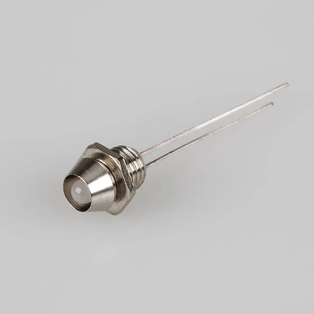 Держатель для 3мм светодиода. Латунь, покрытие - хром. Держатель + гайка + вставка.