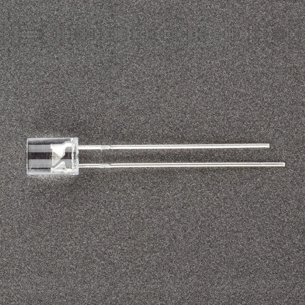 Поставка под заказ от 5000 шт. Выводной цилиндрический светодиод, d=5 мм, прозрачная линза с УФ-фильтром. Цвет свечения белый (6000-8000 К). Угол излучения 100°. Сила света Iv=2000-3600 мкд при If=20 мА. VF=2.9-3.5 В. Рекомендуемый постоянный рабочий ток <16-17 мА.
