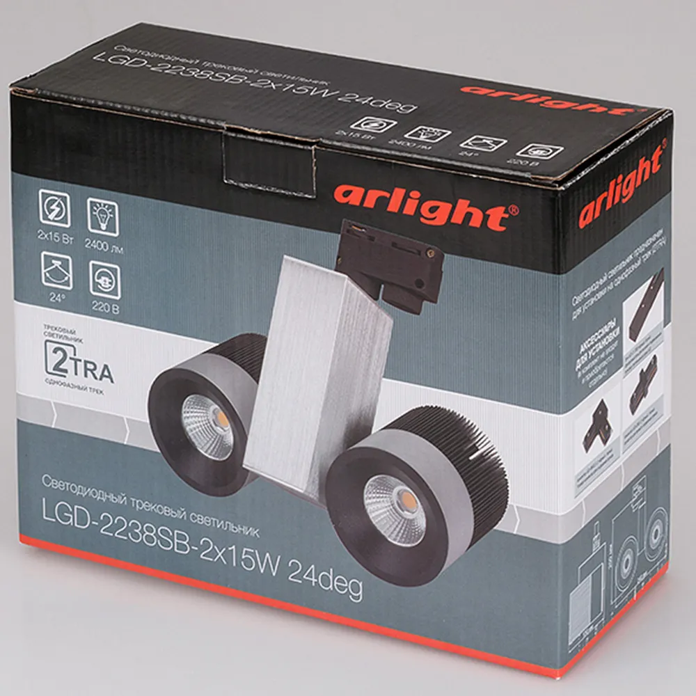 В магазине Мельковский Свет Вы можете купить "Светодиодный светильник LGD-2238SB-2x15W White 24deg (Arlight, IP20 Металл, 3 года)"