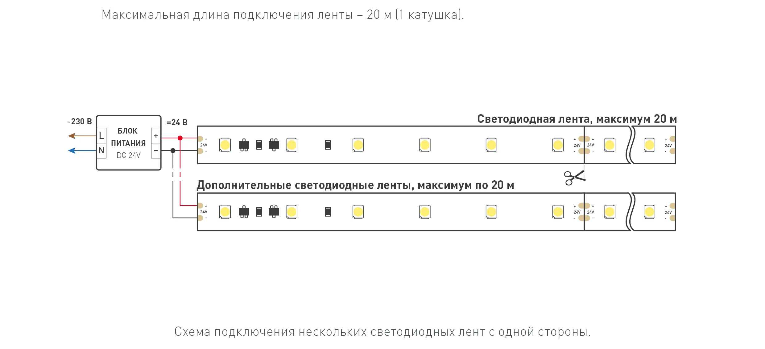 Стабилизированная лента 20 метров, светодиоды smd 3528, 60шт/м (1200шт на 20м), белая плата 10мм, скотч 3М. Цвет БЕЛЫЙ 6000-6500K. Питание 24V, мощность 4.8 Вт/м (96 Вт на 20м), угол 120°, цветопередача CRI>80. Размеры 20000х10x2.2мм. Мин.отрезок 100мм, 6 шт светодиодов. Пакет 20м. Цена за 1м.