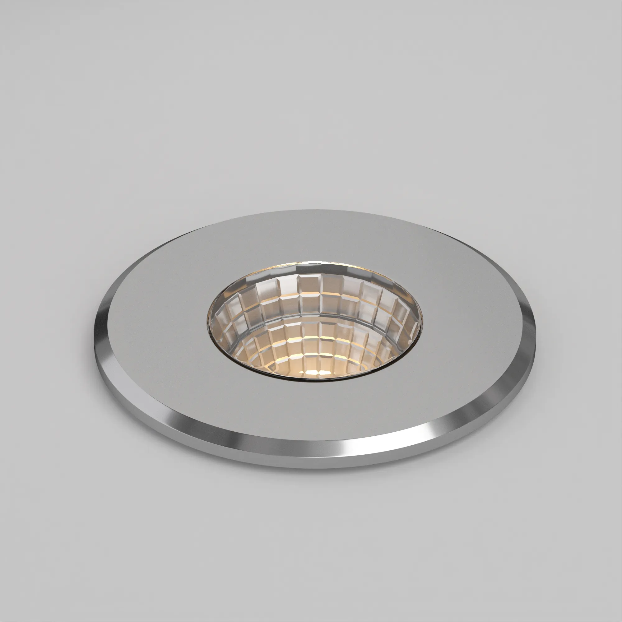 Встраиваемый светодиодный светильник для грунта и пола. Мощность 6Вт, световой поток 327лм, цвет ТЕПЛЫЙ 3000К. CRI(Ra)>80, угол 24°. Круглый влагозащищенный корпус IP67, нержавеющая сталь. Экран закалённое стекло. Питание AC100-245V, 6Вт. Размер DxH Ø65x80мм. Установка в отверстие DxH Ø53x110мм.