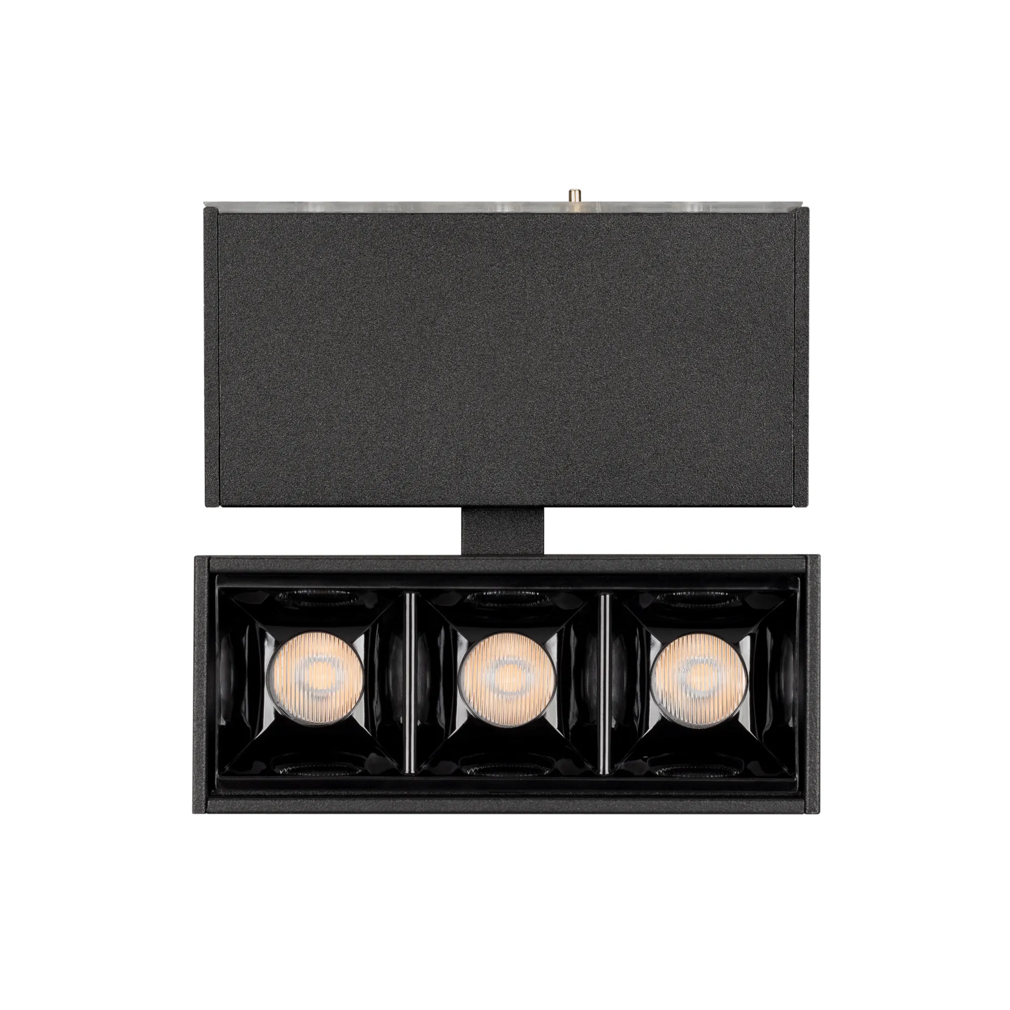 Светильник для магнитных треков шириной 45мм, 3Вт. Цвет свечения ДНЕВНОЙ 4000K, световой поток 226лм, угол 15°, CRI>90. Корпус прямоугольный, металл, цвет черный, IP20. Размеры LxWxH 84x35x93мм. Входное напряжение DC24V, мощность 3Вт. Драйвер DС24V/AC230V поставляется отдельно. Диммируется только с 026407(1), 027633.