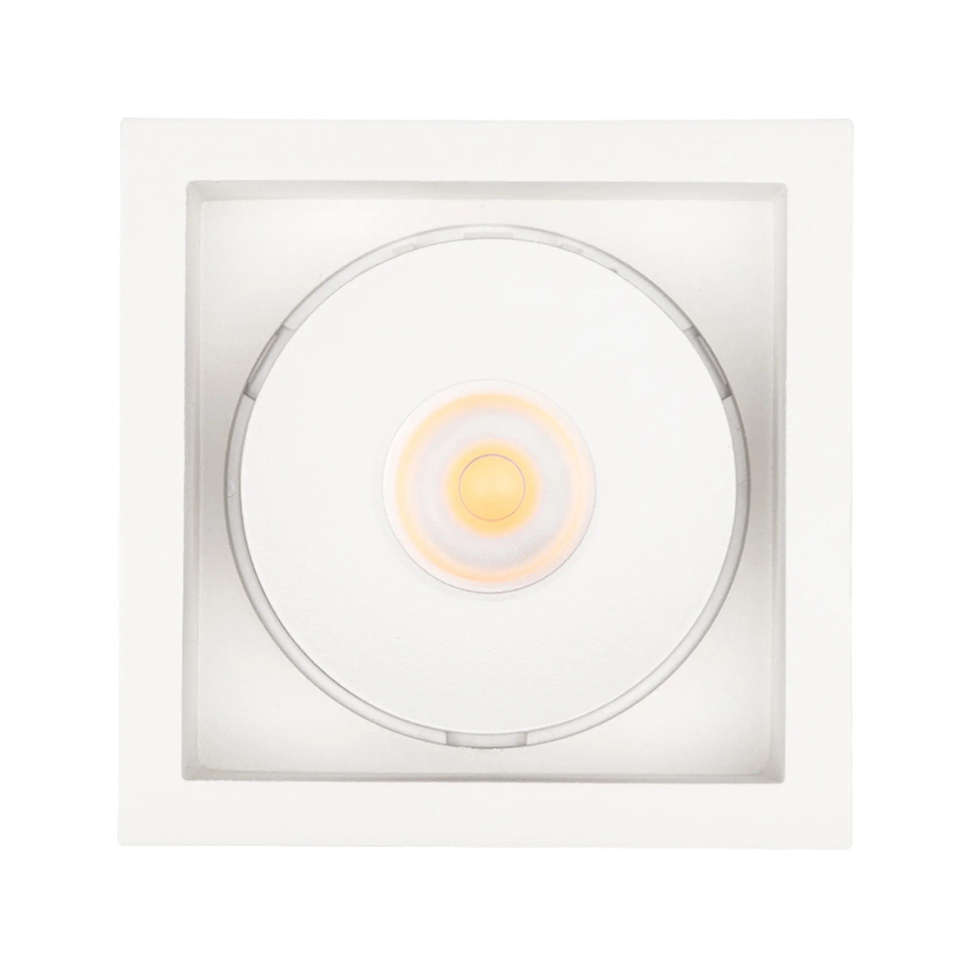 Встраиваемый поворотный светильник для потолка. Мощность 9W, цвет ДНЕВНОЙ 4000K, св.поток 630лм, угол 45°, RA>90. Корпус квадратный белый. Питание AC180-240V. Размеры LxWxH 80x80x90мм. Установка в отверстие 70x70мм. Драйвер в комплекте (30-45V, 220mA).