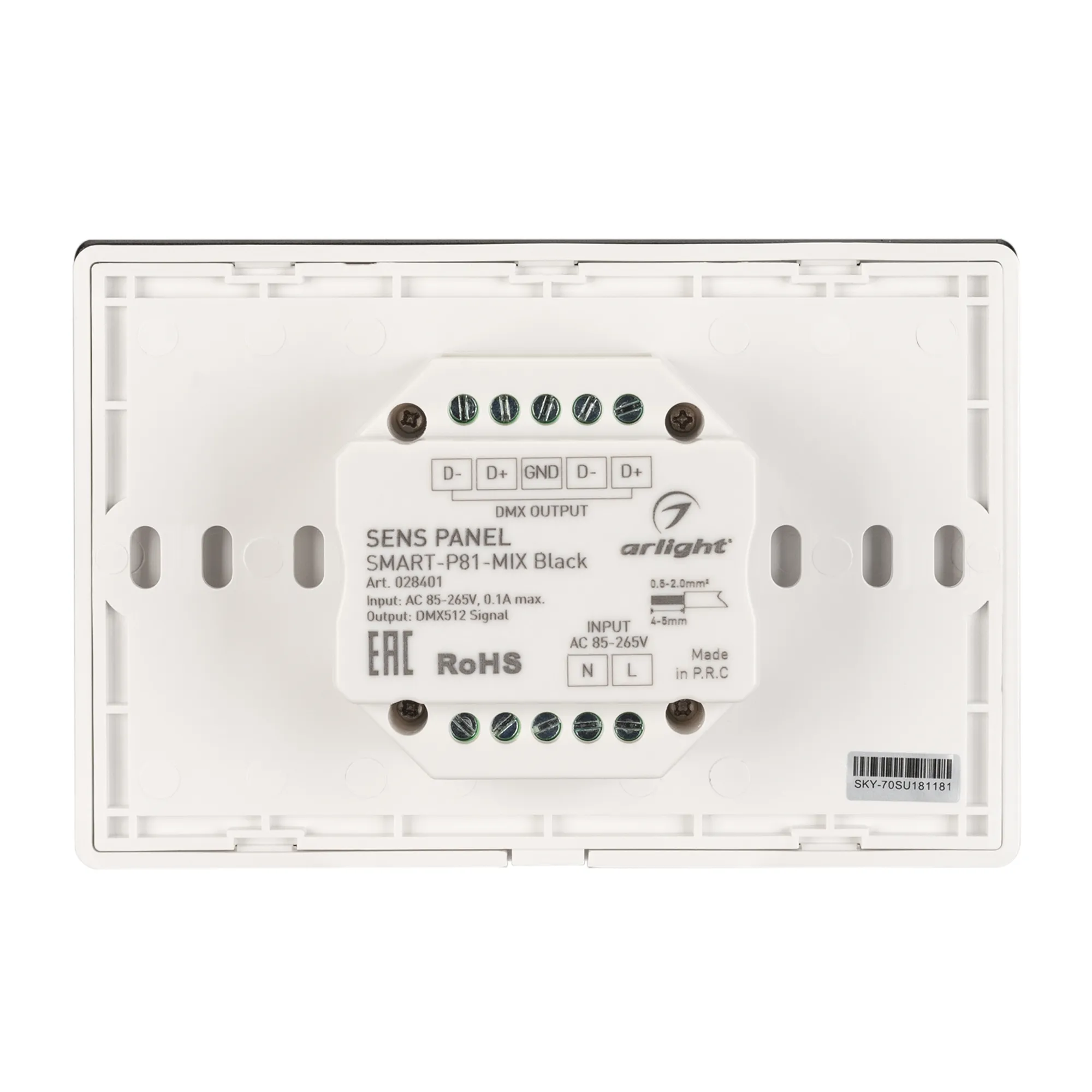 В магазине Мельковский Свет Вы можете купить "Панель Sens SMART-P81-MIX Black (230V, 4 зоны, 2.4G) (Arlight, IP20 Пластик, 5 лет)"