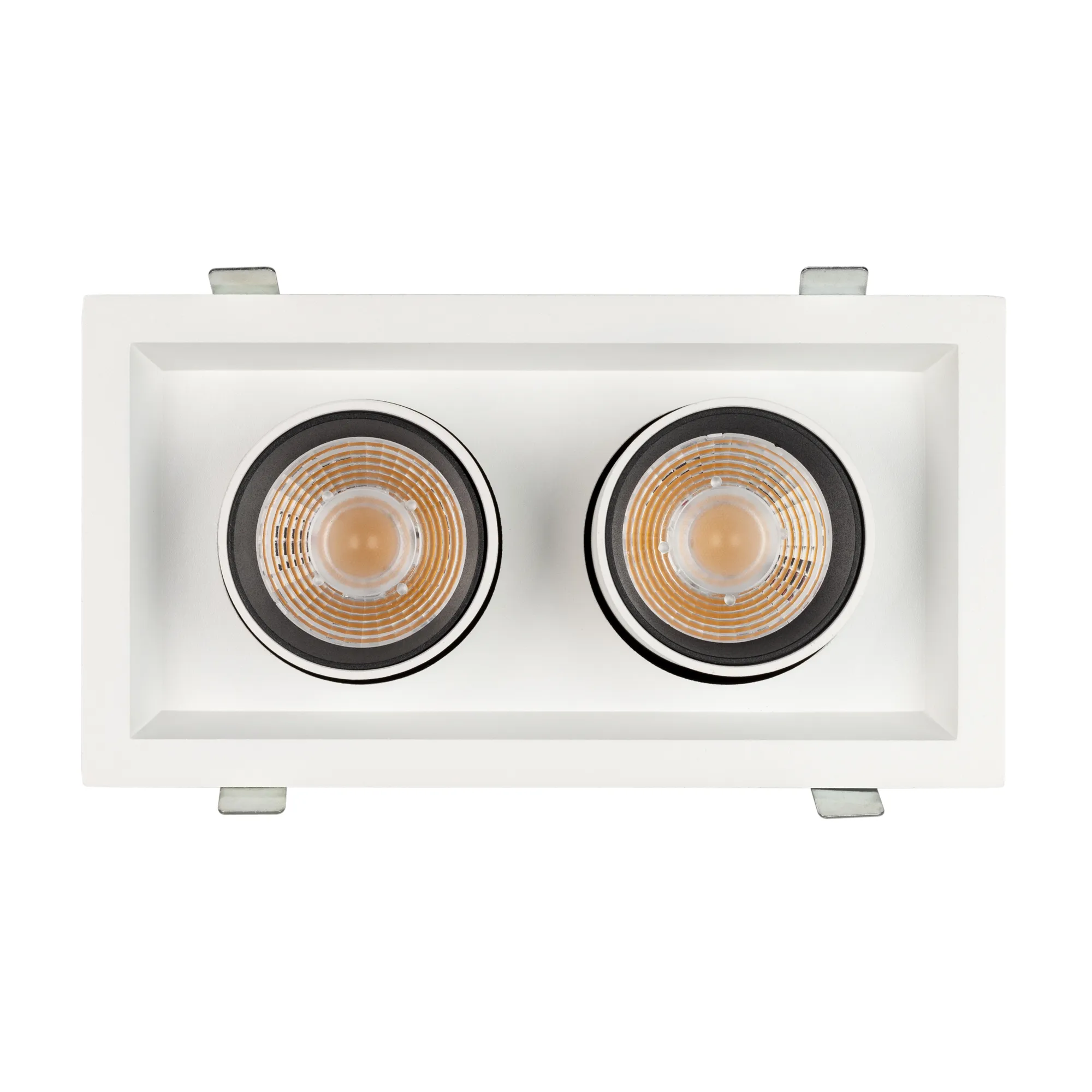 Встраиваемый поворотный выдвигающийся светильник для потолка. Светодиоды 2x10W, цвет БЕЛЫЙ ДНЕВНОЙ 4000K, св.поток 1900лм, угол 24°, RA>90. Корпус белый. Мощность 20Вт, питание AC220-240V. Размеры WxLxH 112x210x127мм. Установка в отверстие 100x195мм. Драйвера в комплекте (2 шт 30-48V 250mA).