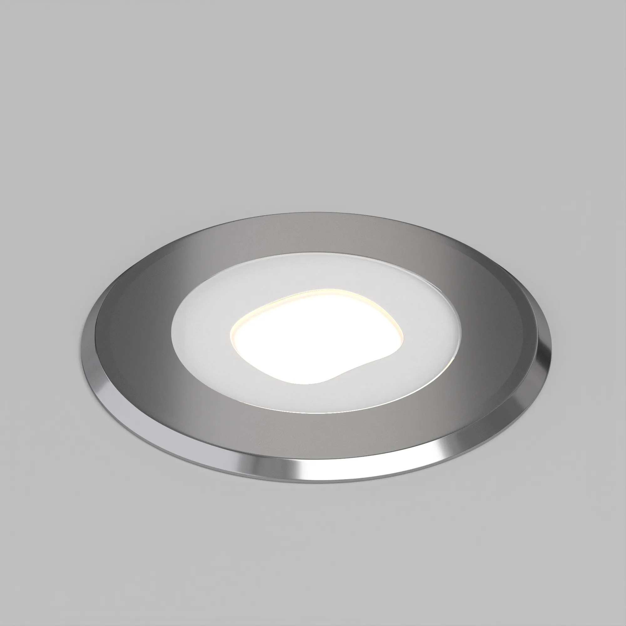 Встраиваемый светодиодный светильник для грунта и пола. Мощность 9Вт, световой поток 500лм, цвет ДНЕВНОЙ 4000К. CRI(Ra)>80, угол 60° асимметричный, наклон луча 30°. Круглый влагозащищенный корпус IP67, нержавеющая сталь. Экран закалённое стекло. Питание 230В, 9Вт. Размер DxH Ø78x78мм. Установка в отверстие DxH Ø66x95мм.