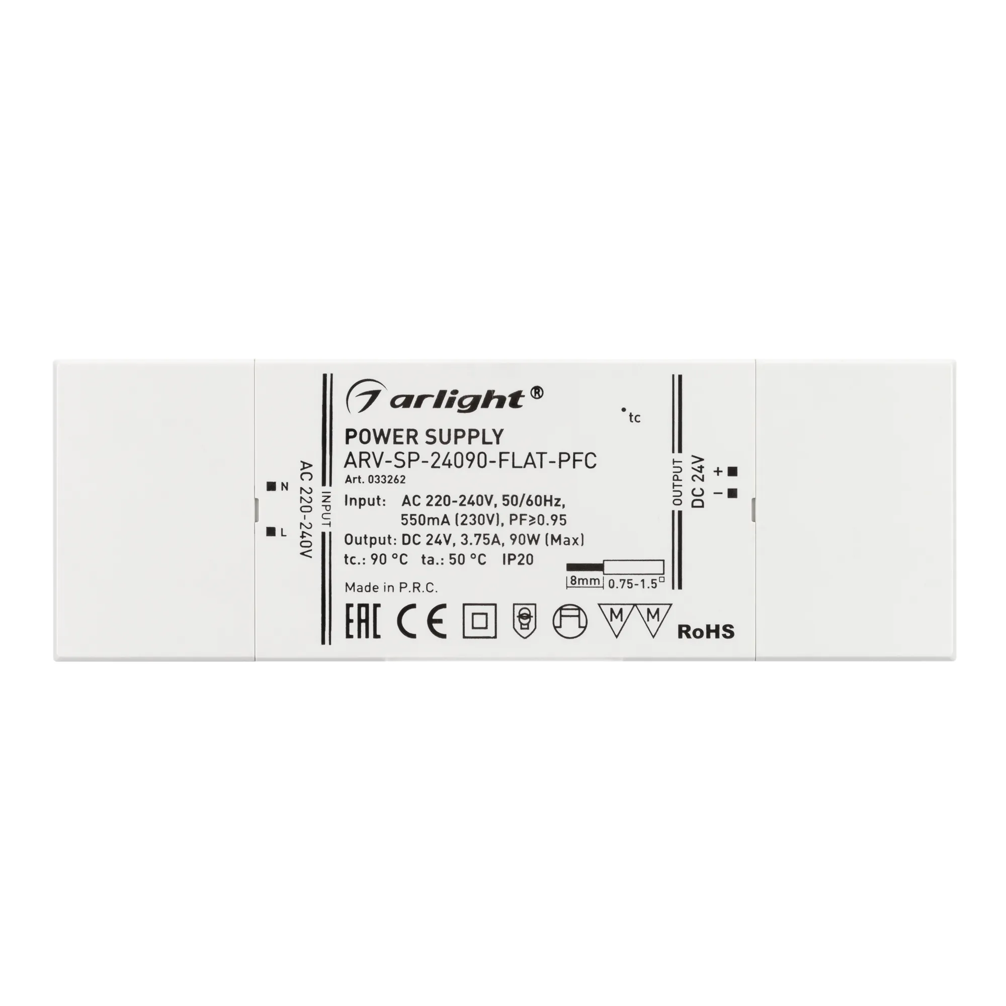 Блок питания ARV-SP-24090-FLAT-PFC (24V, 3.75A, 90W) (Arlight, IP20 Пластик, 5 лет)