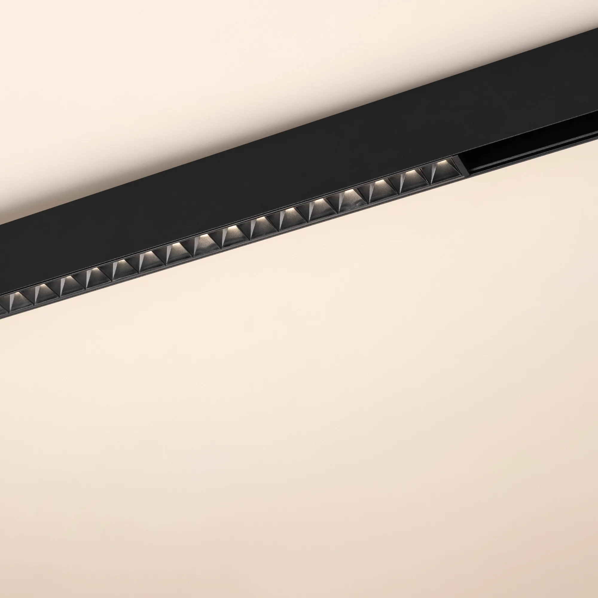 Светильник для магнитных треков MAG-ORIENT шириной 26 мм. Мощность 16 Вт, св. поток 870 лм, 54 лм/Вт, теплый 3000 K, CRI>90, угол 24°, напряжение питания 48 В. Черный прямоугольный корпус из металл, экран поликарбонат, степень защиты IP20. Размер: длина 462 мм, ширина 22 мм, высота 42 мм. Монтаж на трек MAG-ORIENT. Пульсация <1%.