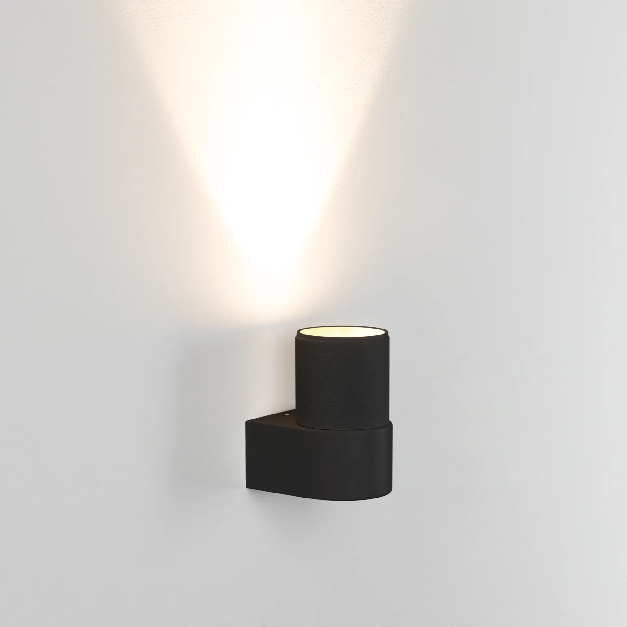 Настенный светильник со свечением вверх или вниз. Мощность 6 Вт, св. поток 360 лм, 55 лм/Вт, теплый 3000 K, CRI>90, угол 40°, напряжение питания 230 В. Черный фигурный корпус из алюминия, степень защиты IP20. Размер: длина 110 мм, ширина 72 мм, высота 115 мм. Монтаж накладной. Драйвер 26-40 В, 150 мА, пульсация <1%.