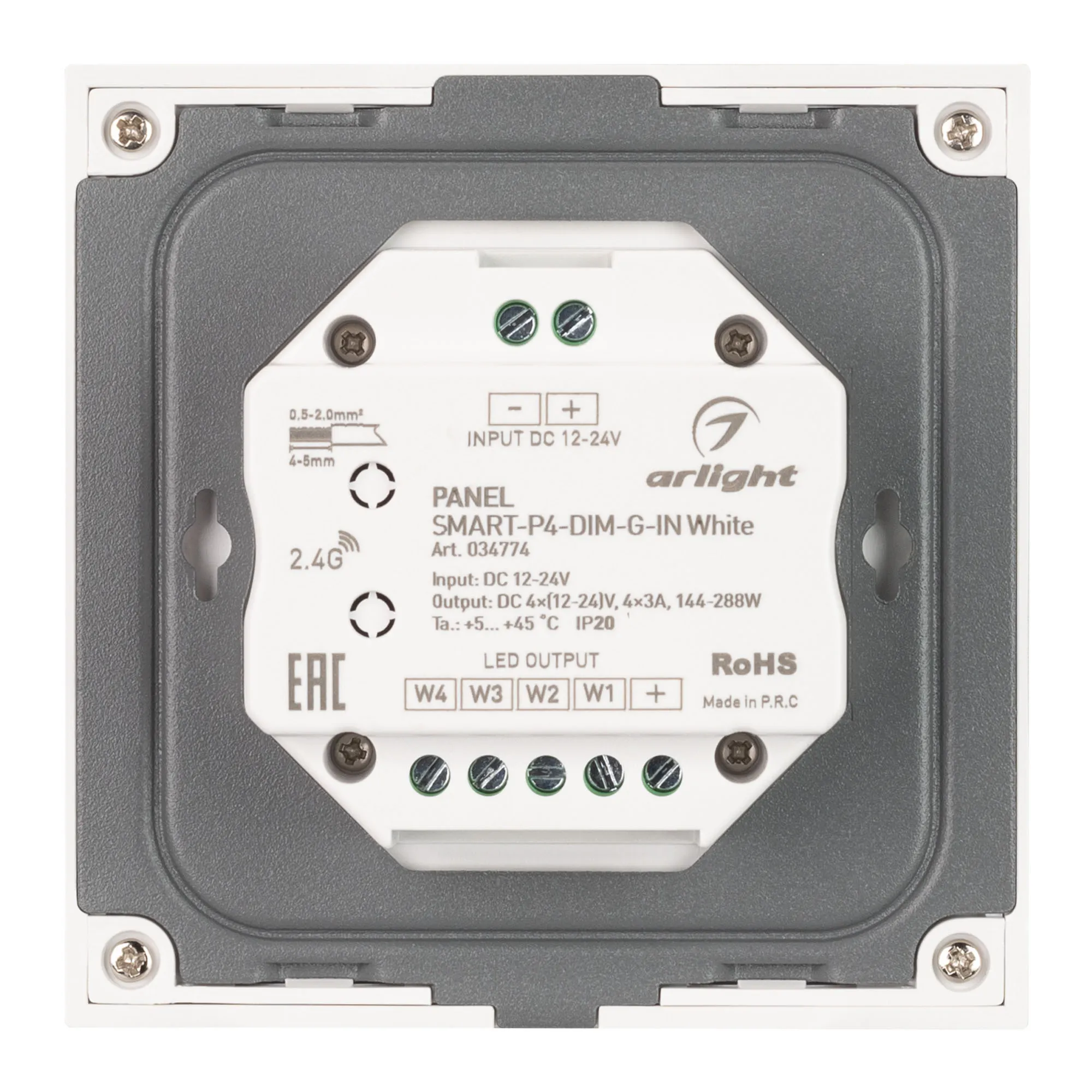 Панель SMART-P4-DIM-G-IN White (12-24V, 4x3A, Sens, 2.4G) (Arlight, IP20 Пластик, 5 лет)