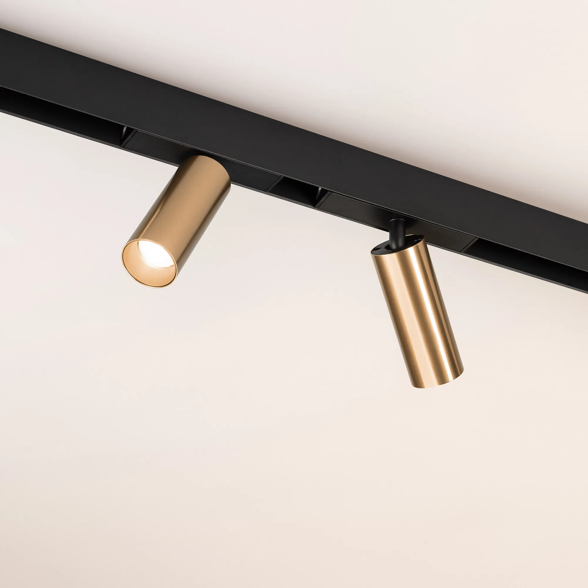 Светильник поворотный для магнитных треков шириной 25 мм, 9 Вт. Цвет свечения ДНЕВНОЙ 4000K, световой поток 630 лм, угол 30°, CRI>90. Корпус прямоугольный, металл, цвет черный-золотой, IP20. Размеры LxWxH 100x20x120 мм. Входное напряжение DC24V, мощность 9 Вт. Драйвер DС24V/AC230V поставляется отдельно.Диаметр светоизлучающего модуля 35 мм. Диммируется только с 026407, 027633.