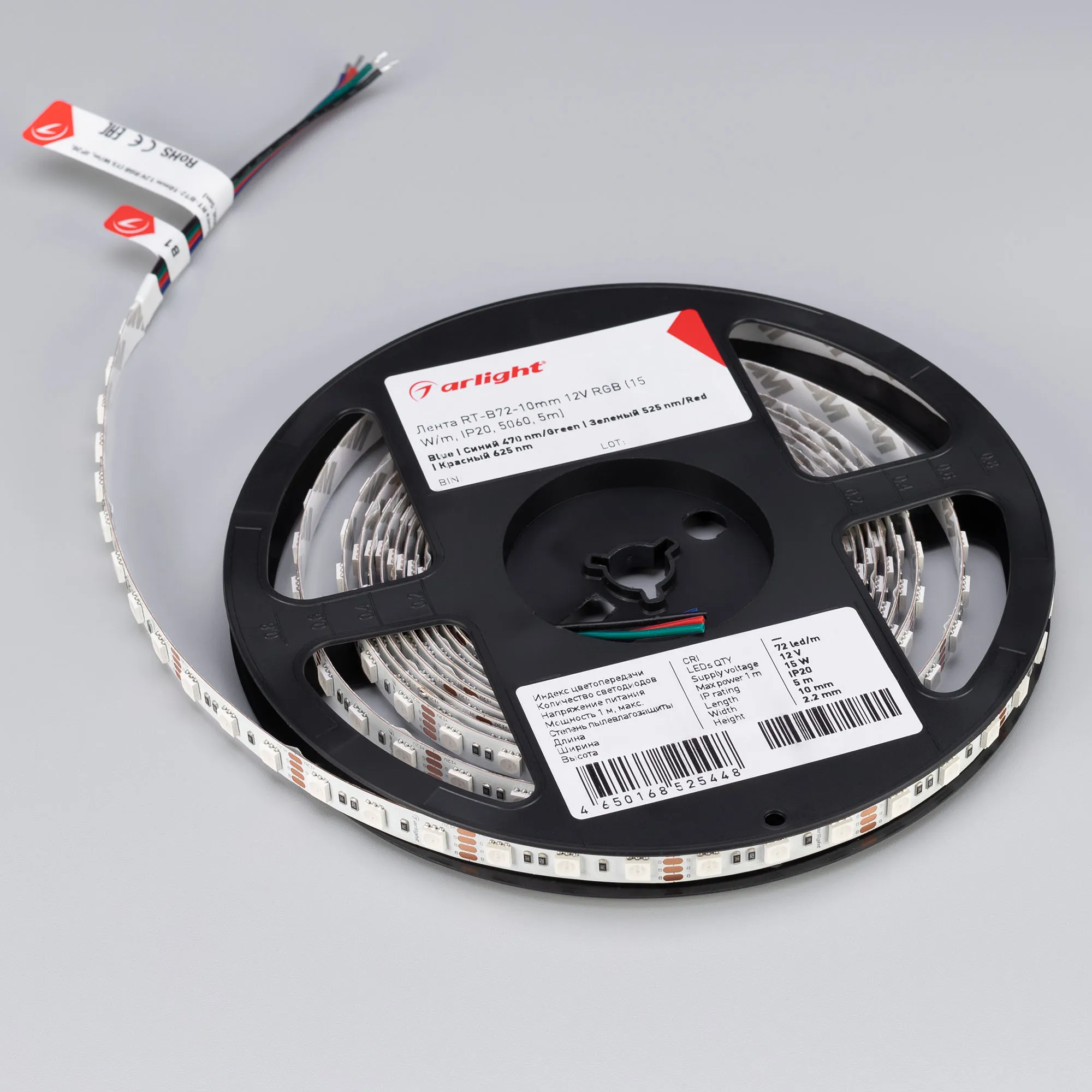 Лента светодиодная RT-B72-10mm 12V RGB (15 W/m, IP20, 5060, 5m) (Arlight, 15 Вт/м, IP20)