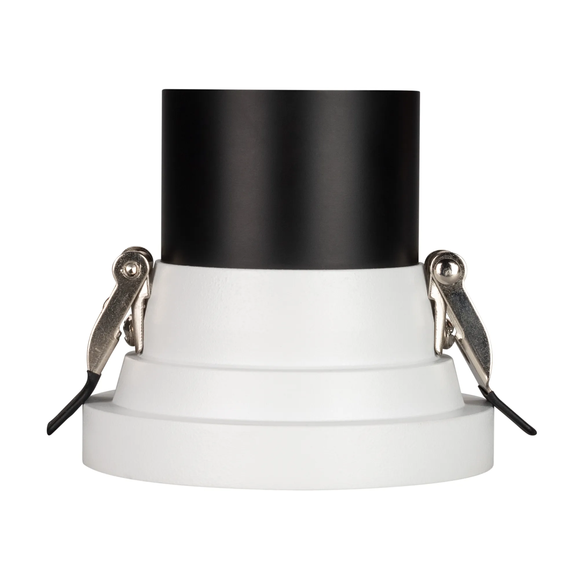 Встраиваемый светильник даунлайт. Мощность 10 Вт, св. поток 875 лм, 88 лм/Вт, дневной 4000 K, CRI>90, UGR<16, угол 38°, напряжение питания 230 В. Белый круглый корпус из алюминия, степень защиты IP20. Размер: диаметр 82 мм, высота 76 мм. Монтаж встраиваемый, установочное отверстие: диаметр 76 мм. Драйвер 20-40 В, 250 мА, пульсация <2%.