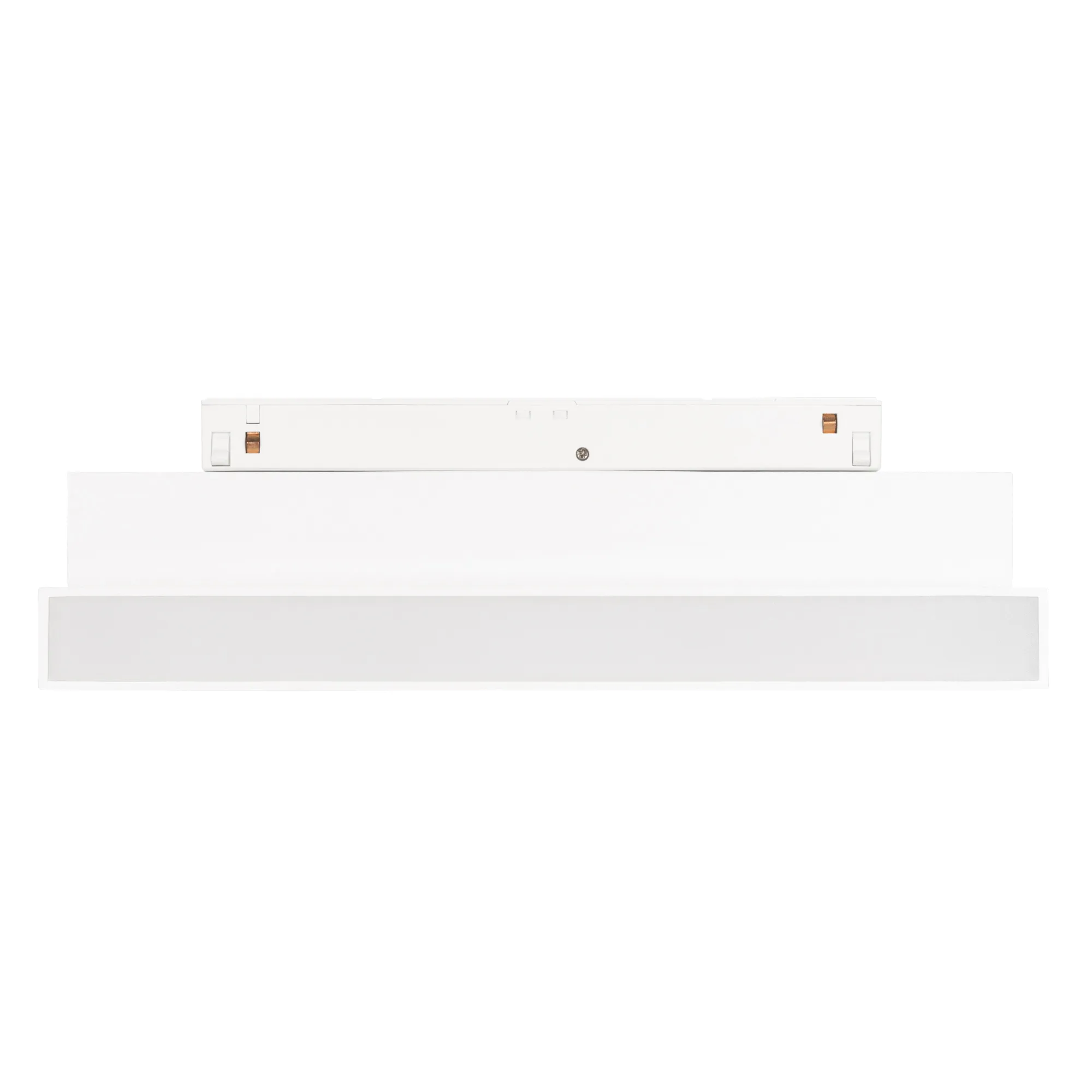 Светильник для магнитных треков MAG-ORIENT шириной 26 мм. Мощность 12 Вт, св. поток 750 лм, 60 лм/Вт, теплый 3000 K, CRI>90, угол 80°, напряжение питания 48 В. Белый прямоугольный корпус из металл, экран поликарбонат, степень защиты IP20. Размер: длина 231 мм, ширина 23 мм, высота 107 мм. Монтаж на трек MAG-ORIENT. Пульсация <1%.