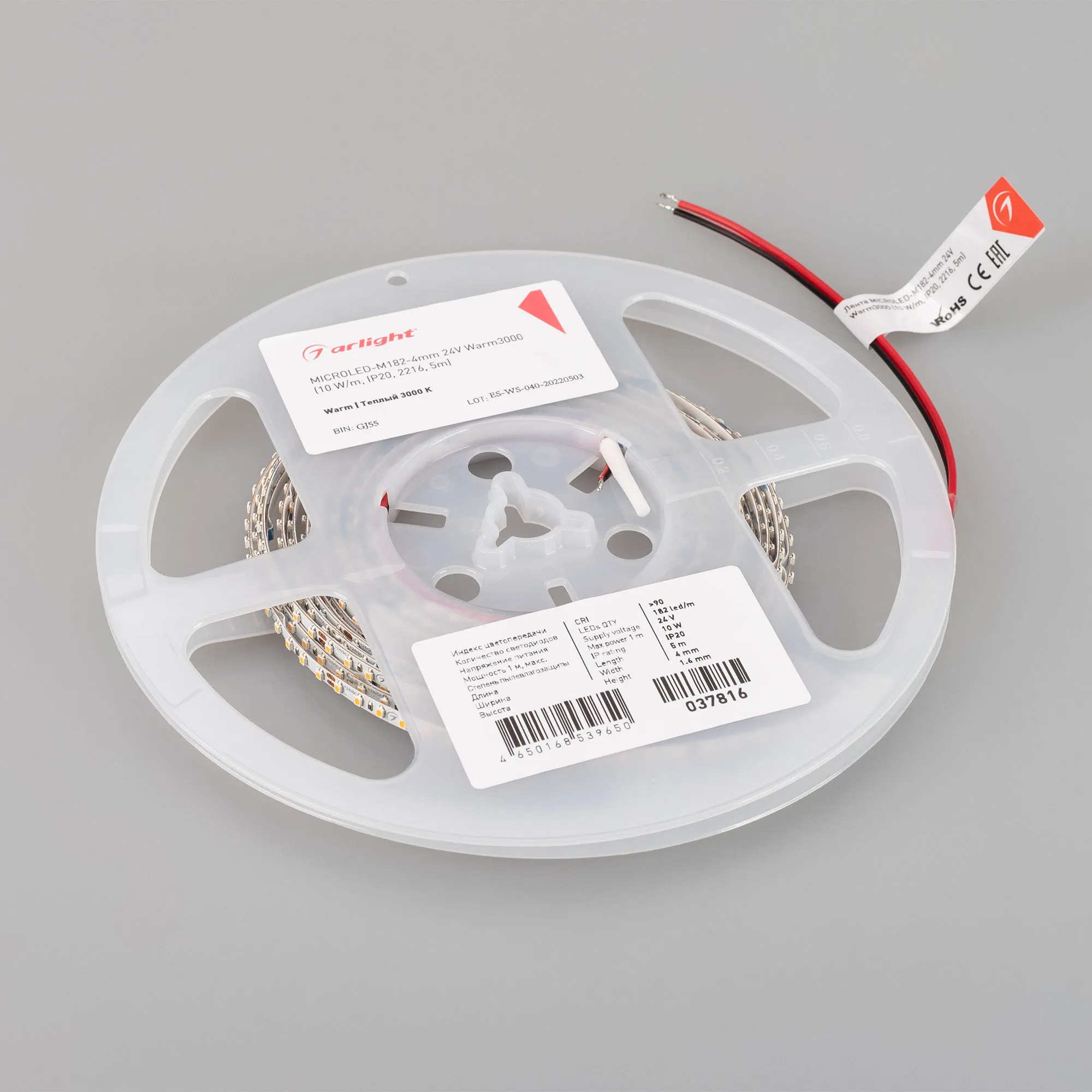 Светодиодная узкая лента MICROLED серии M182 . Светодиоды SMD 2216, 182 шт/м, белая плата шириной 4 мм, скотч 3M. Цвет ТЕПЛЫЙ 3000K, индекс цветопередачи CRI>90, угол 120°. Питание 24 В, мощность 10 Вт/м (50 Вт на 5 м). Размеры 5000х4х1.6 мм. Мин. отрезок 38.5 мм, 7 светодиодов. Цена за 1 м. Обязательна установка на профиль.