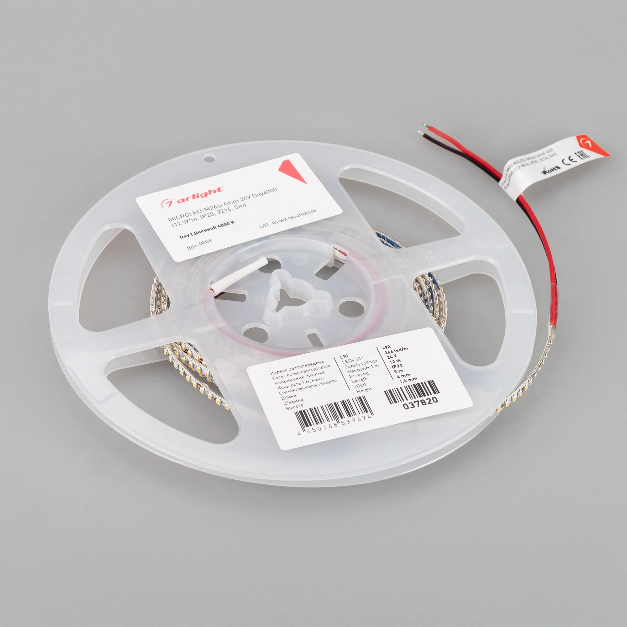 Светодиодная узкая лента MICROLED серии M266 . Светодиоды SMD 2216, 266 шт/м, белая плата шириной 4 мм, скотч 3M. Цвет ДНЕВНОЙ 4000K, индекс цветопередачи CRI>90, угол 120°. Питание 24 В, мощность 12 Вт/м (60 Вт на 5 м). Размеры 5000х4х1.6 мм. Мин. отрезок 26.4 мм, 7 светодиодов. Цена за 1 м. Обязательна установка на профиль.