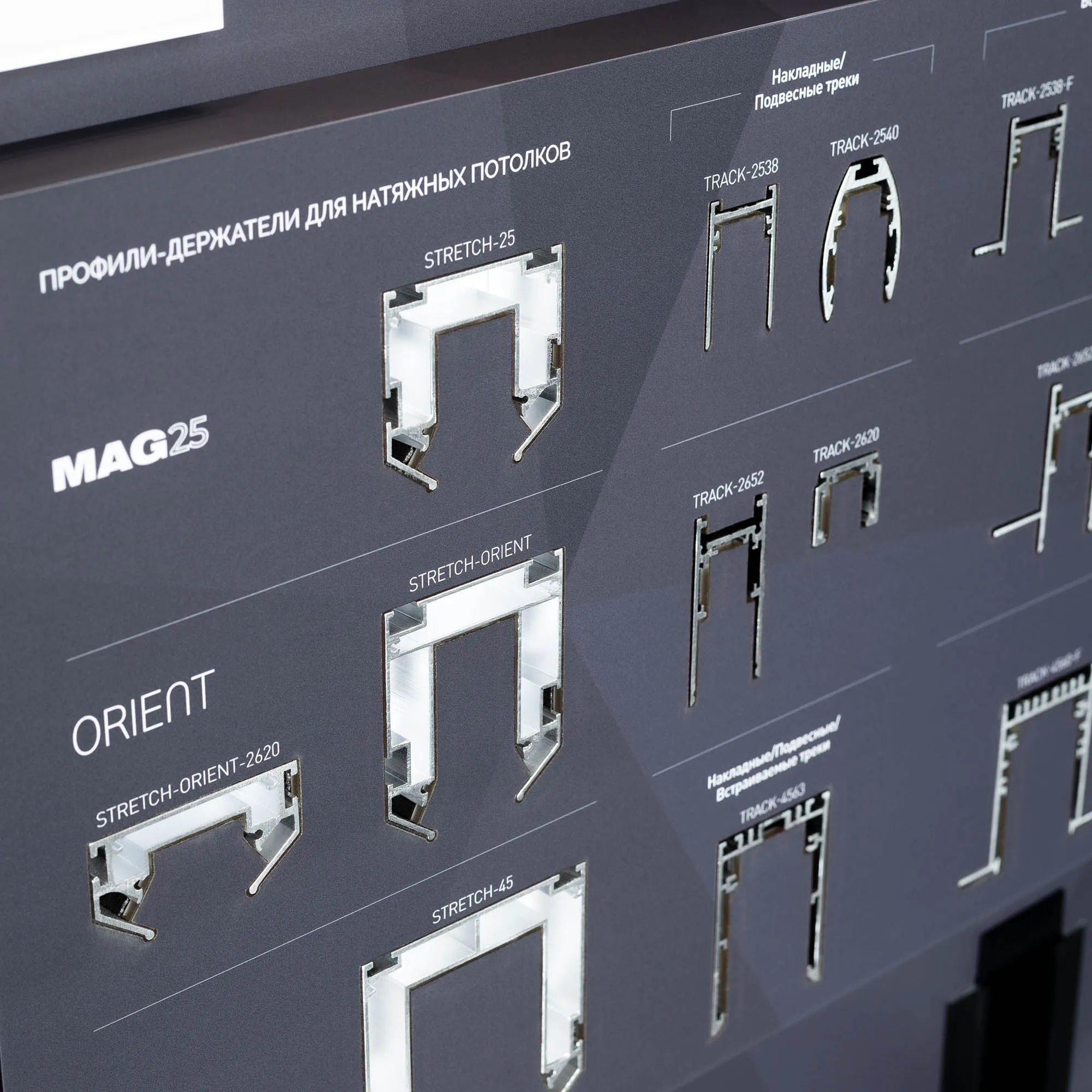 Показана возможность встройки магнитных систем в натяжной потолок с помощью профиля-держателя.