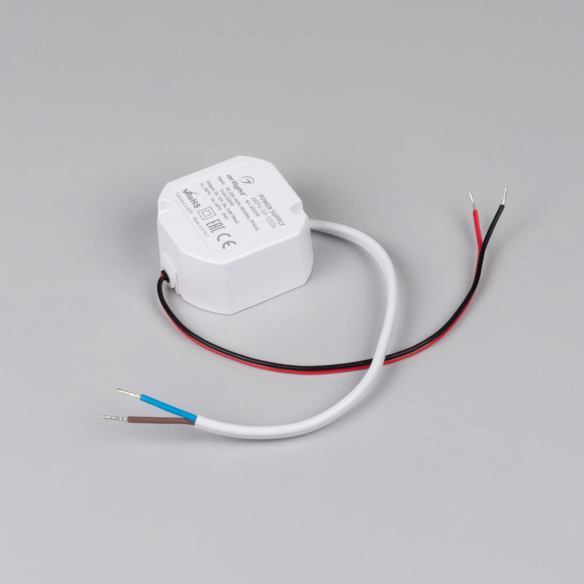 Источник напряжения с гальванической развязкой для светодиодных изделий. Входное напряжение 220-240 VAC. Выходные параметры: 12 В, 2 А, 24 Вт, PF >0.5. Герметичный пластиковый корпус IP 67. Рабочая температура -20…+45C⁰. Габаритные размеры длина 50 мм, ширина 50 мм, высота 25 мм. Гарантийный срок 5 лет.