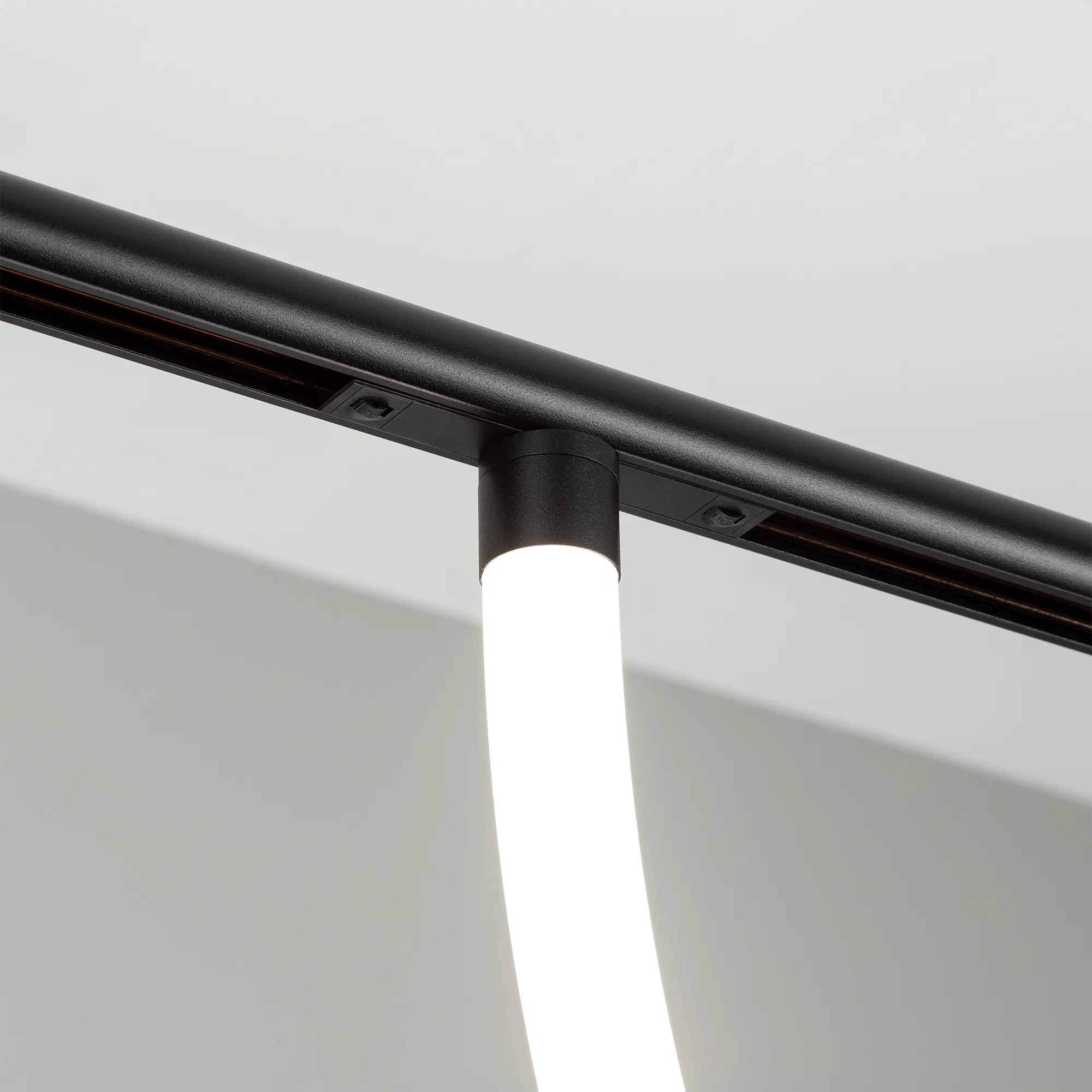 Светильник гибкий для магнитных треков серии ORIENT 2620 mini (не совместим с другими треками серии ORIENT). Мощность 14 Вт, св. поток 940 лм, 67 лм/Вт, дневной 4000 K, CRI>90, угол 360°, напряжение питания 48 В. Матовый белый фигурный корпус из силикона. Размер: диаметр 30 мм, длина 1000 мм. Монтаж на магнитный трек ORIENT 2620. Два адаптера в комплекте.