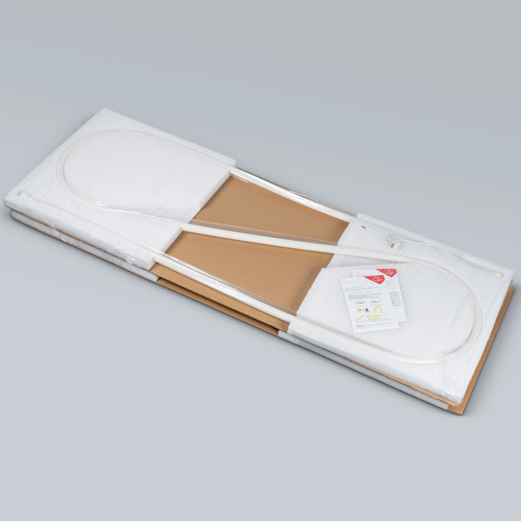 Гибкая герметичная лента (неон серии MOONLIGHT), сечение 25×25 мм. Светодиоды CSP 1088 шт/м. Цвет свечения ДНЕВНОЙ БЕЛЫЙ (4000 К), индекс цветопередачи CRI>90, световой поток 1140 лм/м, угол излучения 360°. Мощность 20 Вт/м, питание 24 В. Класс пылевлагозащиты IP65. Размеры 5000×25×25 мм. Резка не предусмотрена. Форма изгиба ленты фиксируется. Изгиб согласно метки на корпусе, минимальный радиус изгиба 150 мм. Кабель питания длиной 500 мм, вывод с одной стороны перпендикулярно линии сечения неона. Катушка 5 м. Цена за 1 м. В виду особенности конструкции ленты, упаковка имеет размеры 1600x980x260 мм. Гарантия 3 года.