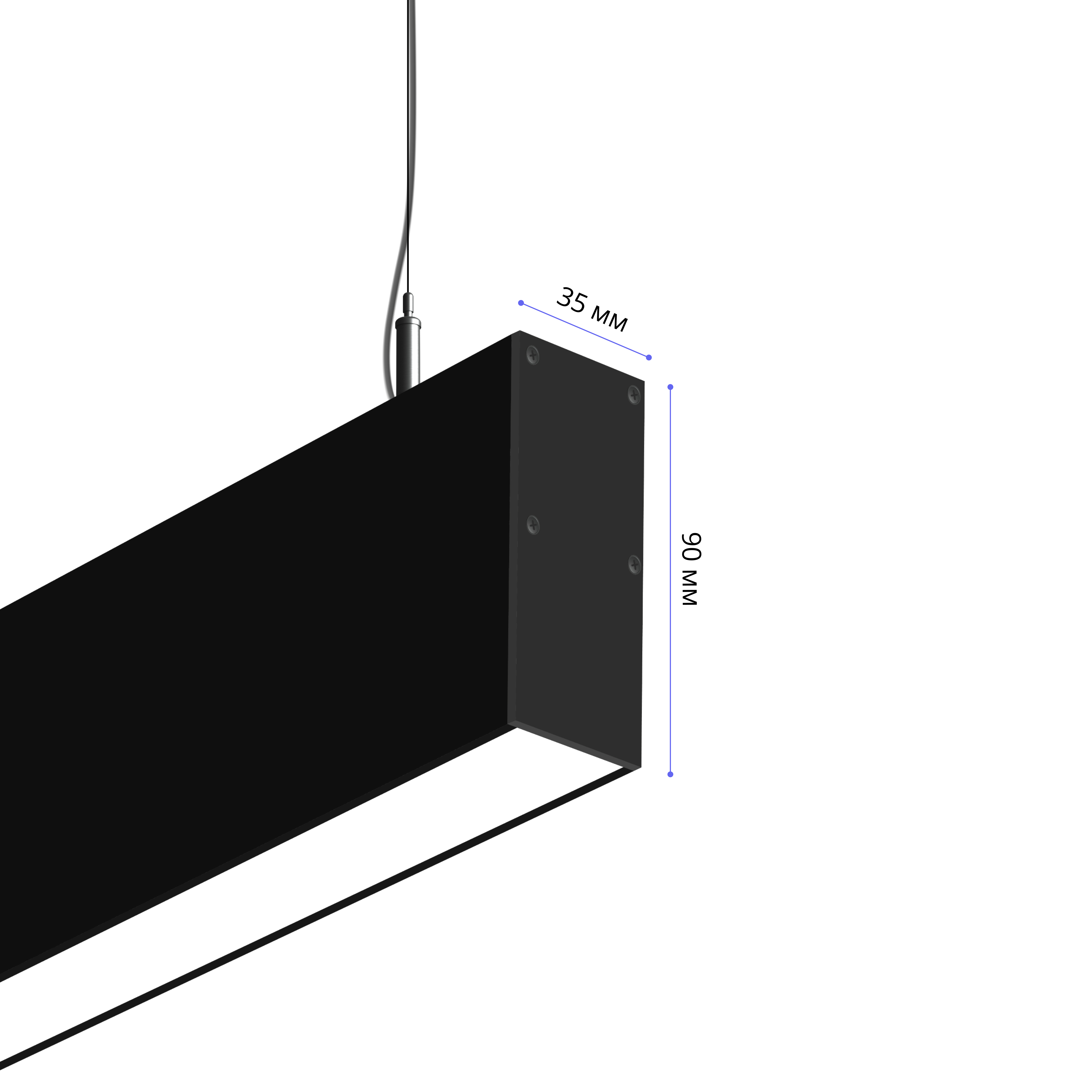 Подвесной светильник MS-LINEAR Линейный размер профиля 90х35мм длиной 1000мм мощностью 60W. Светильник собирается в алюминиевом корпусе с матовым рассеивателем, который дает равномерную засветку по всей площади.