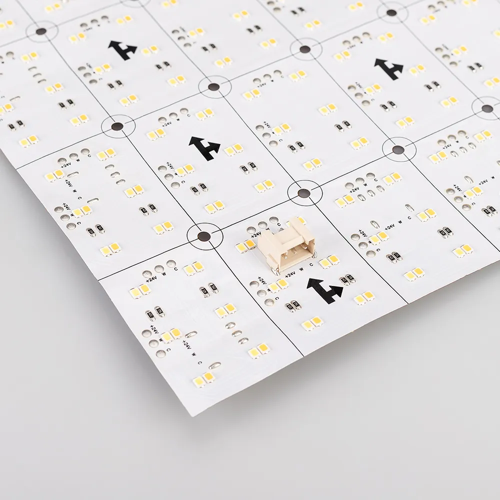 Поставка под заказ от 105 шт. 2-х канальный светодиодный лист с изменяемой цв.температурой. Два цвета БЕЛЫЙ 6000K + ТЁПЛЫЙ 2700K, светодиоды smd 2835, 12шт/сегмент (576 шт/лист). Питание 24V, мощность: лист - 15Вт, мин.1 сегмент-0,31 Вт, цветопередача CRI>90. Скотч 3М. Подача питания в любой точке "+" и "-". Размер 480х240 мм, мин.сегмент 40х60мм.