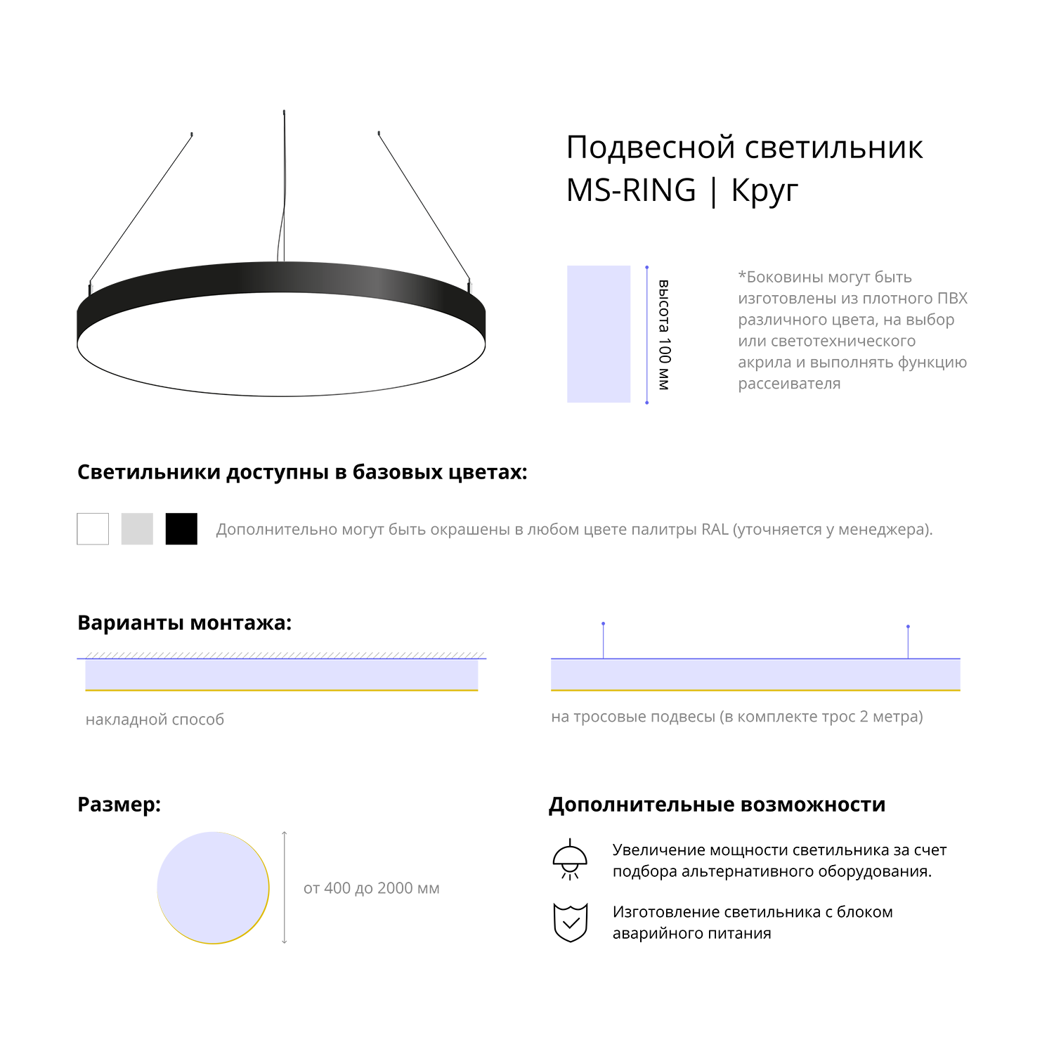 В магазине Мельковский Свет Вы можете купить "Cветодиодный фигурный светильник MS-RING Круг 1300mm 180W 3000/4000/6000K"