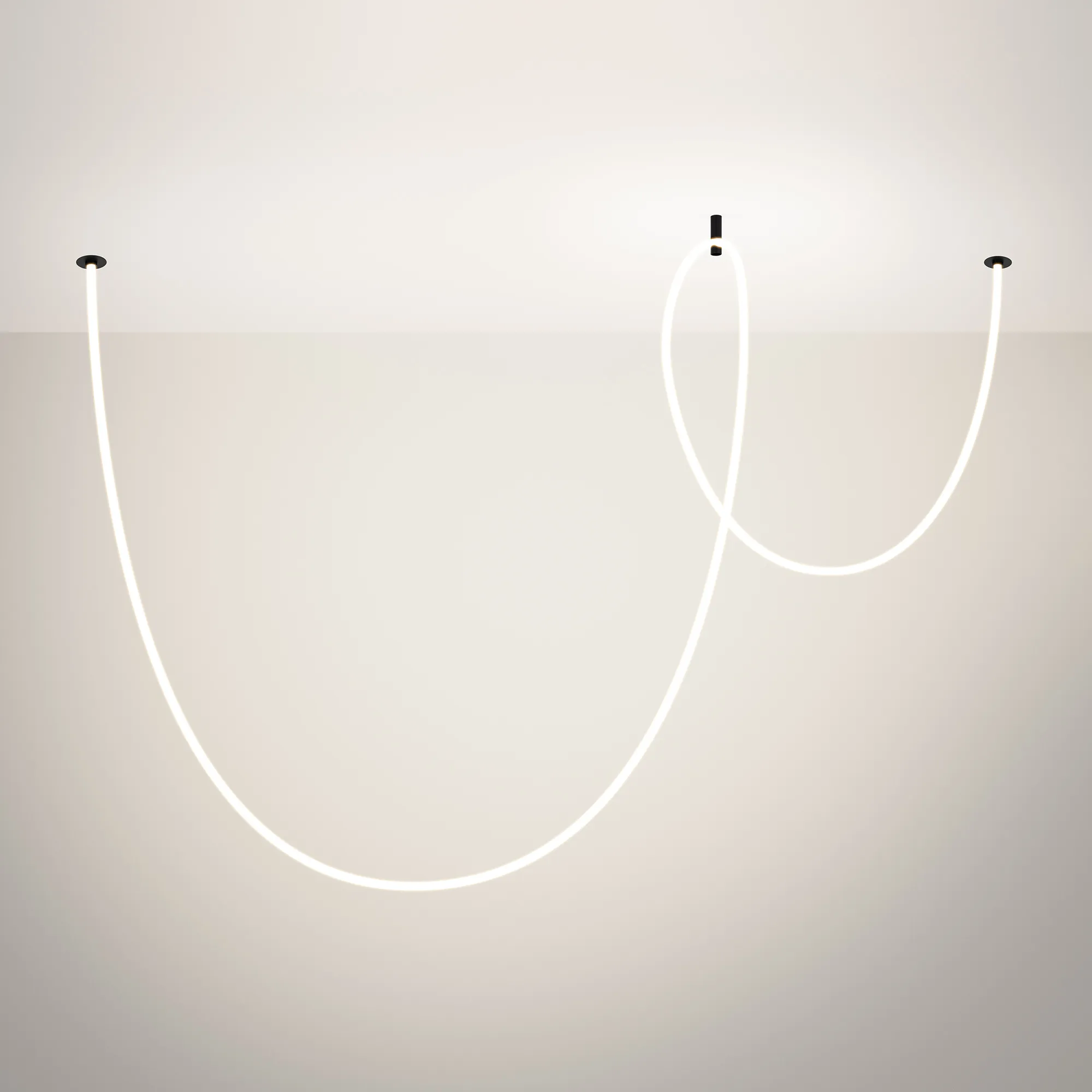 Подвесной светильник. Мощность 58 Вт, св. поток 3900 лм, 67 лм/Вт, дневной 4000 K, CRI>90, угол 360°, напряжение питания 230 В. Черный круглый корпус из стали, силиконовая герметичная лента, степень защиты IP20. Размер: диаметр утапливаемой части чаши 64 мм, высота чаши с утапливаемой частью без вывода под неон 40 мм, общая высота чаши 57 мм, диаметр чаши с фланцем 100 мм, диаметр силиконовой герметичной ленты 18 мм, длина силиконовой герметичной ленты 5000 мм. Монтаж встраиваемый, глубина установки 55 мм, диаметр установочного отверстия 70 мм. Блок питания 24 В, 2500 мА, пульсация <5% в комплекте.