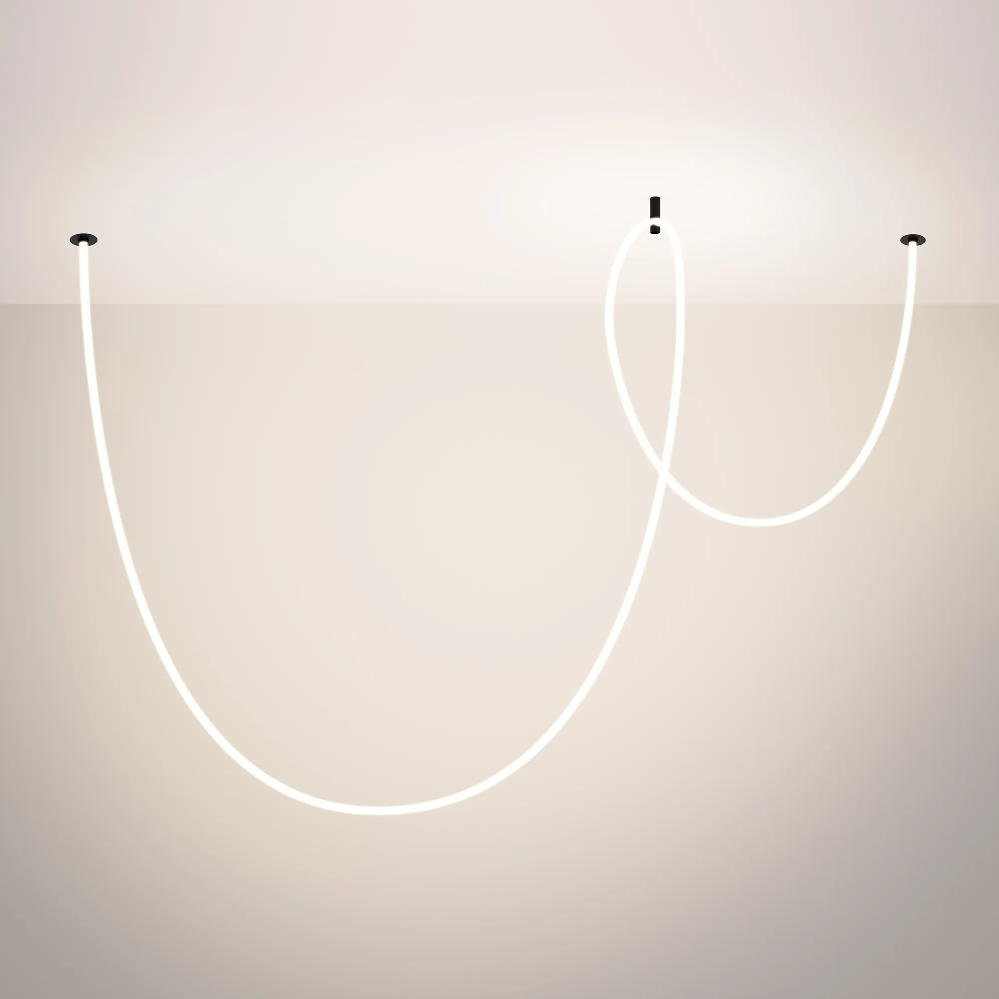 Подвесной светильник. Мощность 58 Вт, св. поток 3260 лм, 56 лм/Вт, тёплый 3000 K, CRI>90, угол 360°, напряжение питания 230 В. Черный круглый корпус из стали, силиконовая герметичная лента, степень защиты IP20. Размер: диаметр утапливаемой части чаши 64 мм, высота чаши с утапливаемой частью без вывода под неон 40 мм, общая высота чаши 57 мм, диаметр чаши с фланцем 100 мм, диаметр силиконовой герметичной ленты 18 мм, длина силиконовой герметичной ленты 5000 мм. Монтаж встраиваемый, глубина установки 55 мм, диаметр установочного отверстия 70 мм. Блок питания 24 В, 2500 мА, пульсация <5%.