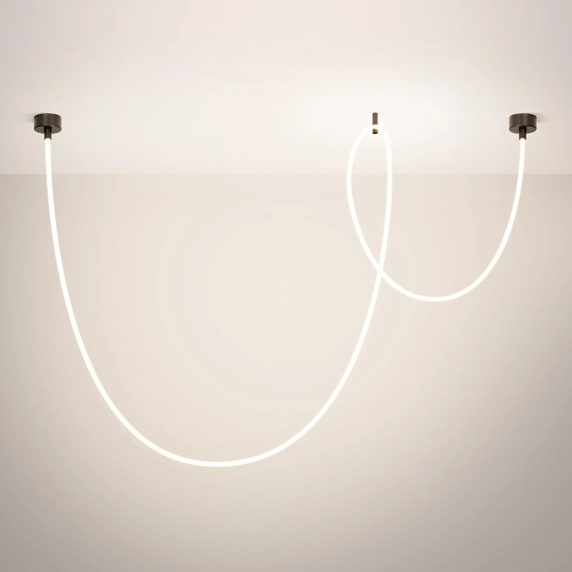 Подвесной светильник. Мощность 58 Вт, св. поток 3260 лм, 56 лм/Вт, тёплый 3000 K, CRI>90, угол 360°, напряжение питания 230 В. Черный круглый корпус из стали, силиконовая герметичная лента, степень защиты IP20. Размер: общая высота чаши 85 мм, высота чаши без вывода под неон 50 мм, диаметр вывода под неон 35 мм, диаметр чаши 130 мм, диаметр силиконовой герметичной ленты 18 мм, длина силиконовой герметичной ленты 5000 мм. Монтаж накладной. Блок питания 24 В, 2500 мА, пульсация <5%. Аксессуары (подвес и крепление) приобретаются отдельно.