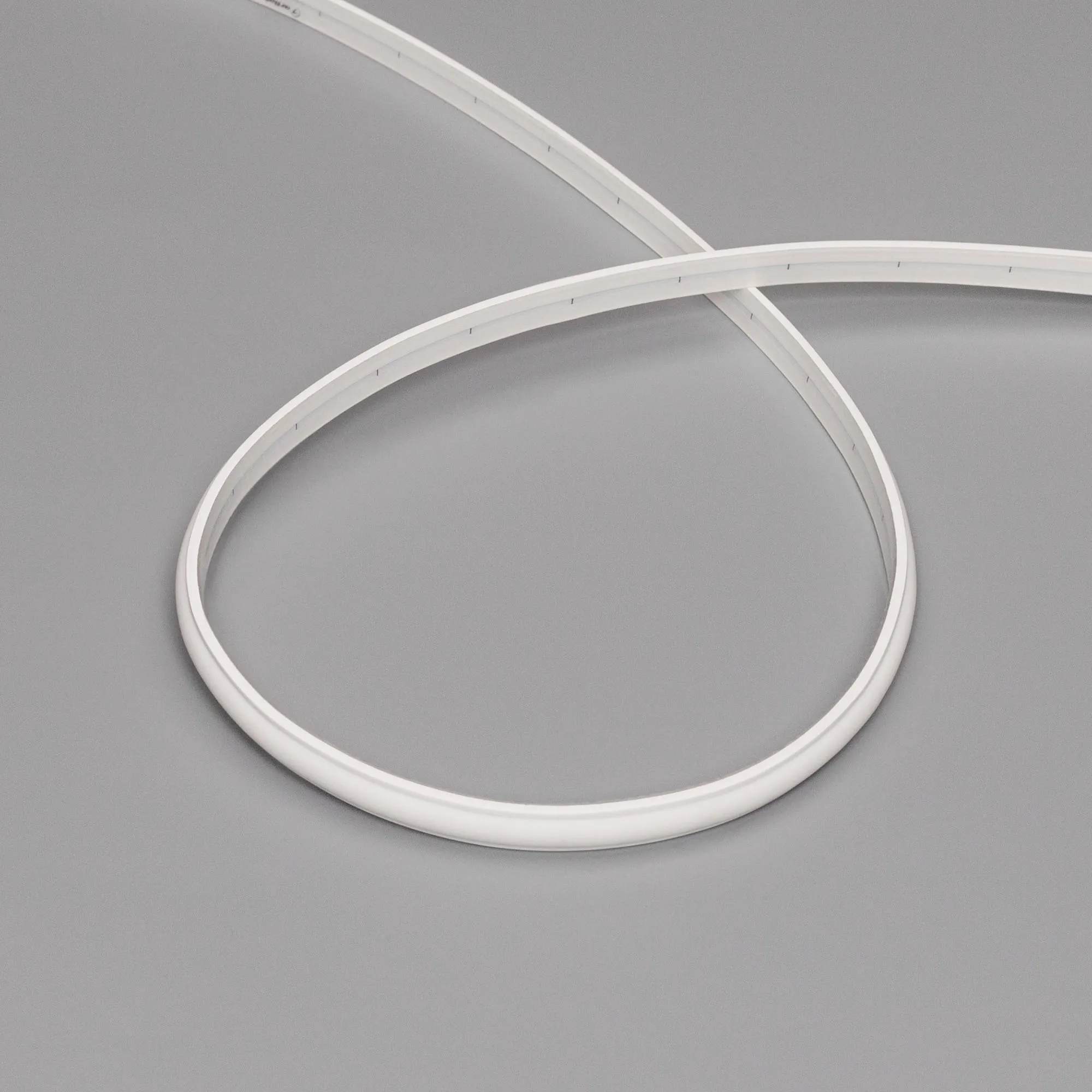 Гибкая герметичная лента (неон серии MOONLIGHT), сечение 10×5 мм. Светодиоды SMD CSP 544 шт/м. Цвет свечения ТЁПЛЫЙ БЕЛЫЙ (2700 К), индекс цветопередачи CRI>90, световой поток 400 лм/м, угол излучения 131.7°. Мощность 10 Вт/м, питание 24 В. Класс пылевлагозащиты IP65. Размеры 5000×10×5 мм. Мин. отрезок 29.4 мм. Вертикальный изгиб TOP, минимальный радиус изгиба 30 мм. Вывод кабеля с двух сторон. Катушка 5 м. Цена за 1 м. Гарантия 3 года.