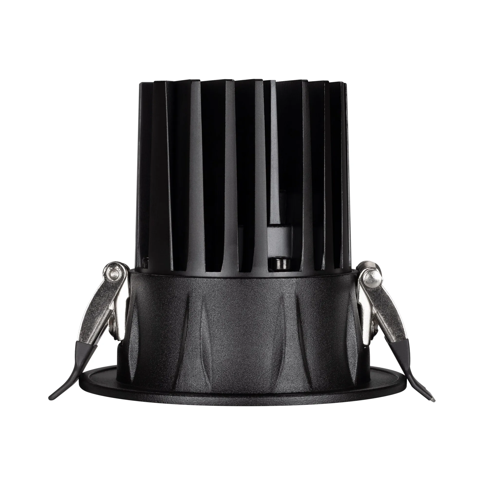 Встраиваемый светильник даунлайт. Мощность 10 Вт, св. поток 750 лм, 75 лм/Вт, тёплый 3000 K, CRI>90, угол 60°, напряжение питания 230 В. Чёрный круглый корпус из алюминия, экран PMMA, степень защиты IP54. Размер: диаметр 86 мм, высота 80 мм. Монтаж встраиваемый, установочное отверстие: диаметр 80 мм. Драйвер IP54, В, 20-40 В, 250 мА, пульсация <1%.