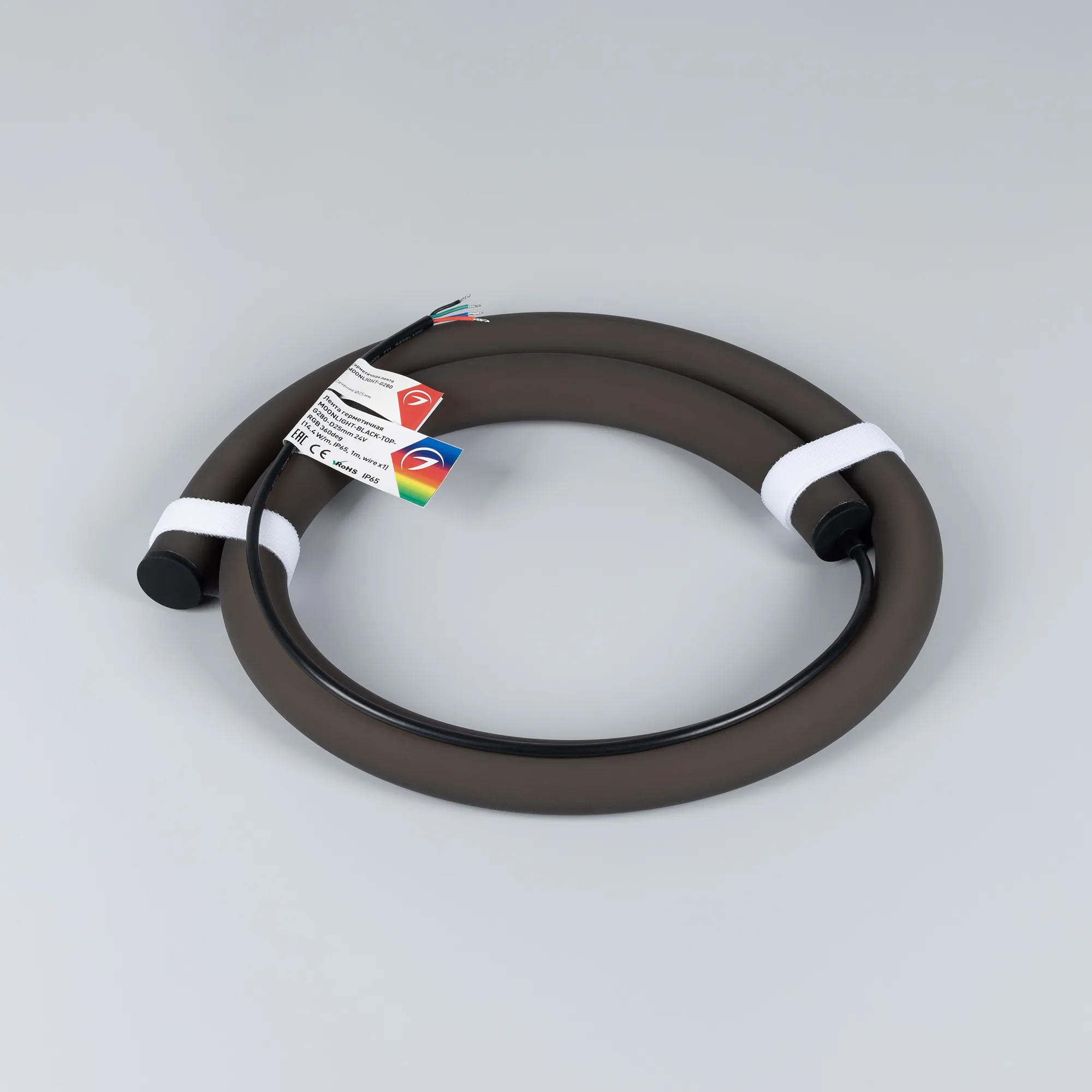 Гибкая герметичная лента (неон серии MOONLIGHT BLACK) чёрного цвета, сечение 25×25 мм. Светодиоды SMD 3838 280 шт/м. Цвет свечения RGB, угол излучения 360°. Мощность 14.4 Вт/м, питание 24 В. Класс пылевлагозащиты IP65. Размеры 1000×25×25 мм. Резка не предусмотрена. Изгиб согласно метки на корпусе, минимальный радиус изгиба 120 мм. Кабель питания длиной 500 мм, вывод с одной стороны вдоль линии сечения неона. Катушка 1 м. Цена за катушку. Гарантия 3 года.