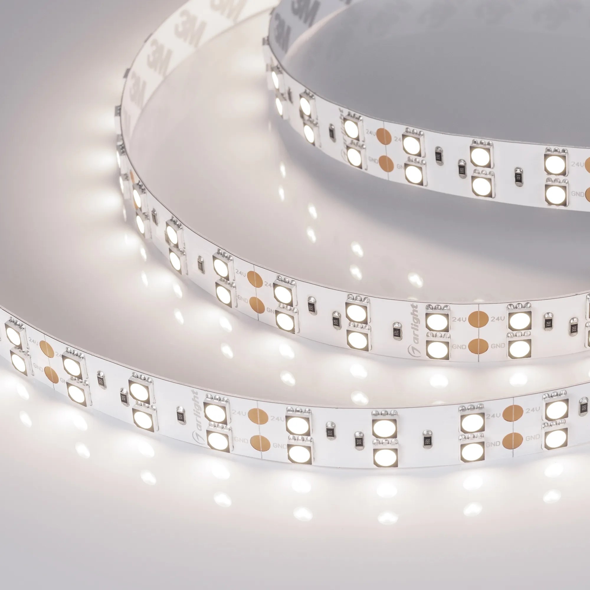 CRI98, гибкая лента LUX, 2 ряда светодиодов smd 5060, 120шт/м (600шт на 5м), белая плата 15мм, скотч 3М. Цвет ДНЕВНОЙ 3800-4200K. Питание 24V, мощность 28.8 Вт/м (144 Вт на 5м), угол 120°, очень высокая цветопередача CRI 95..98. Размеры 5000х15х2.2мм. Мин.отрезок 50мм, 6 светодиодов. Цена за 1м.