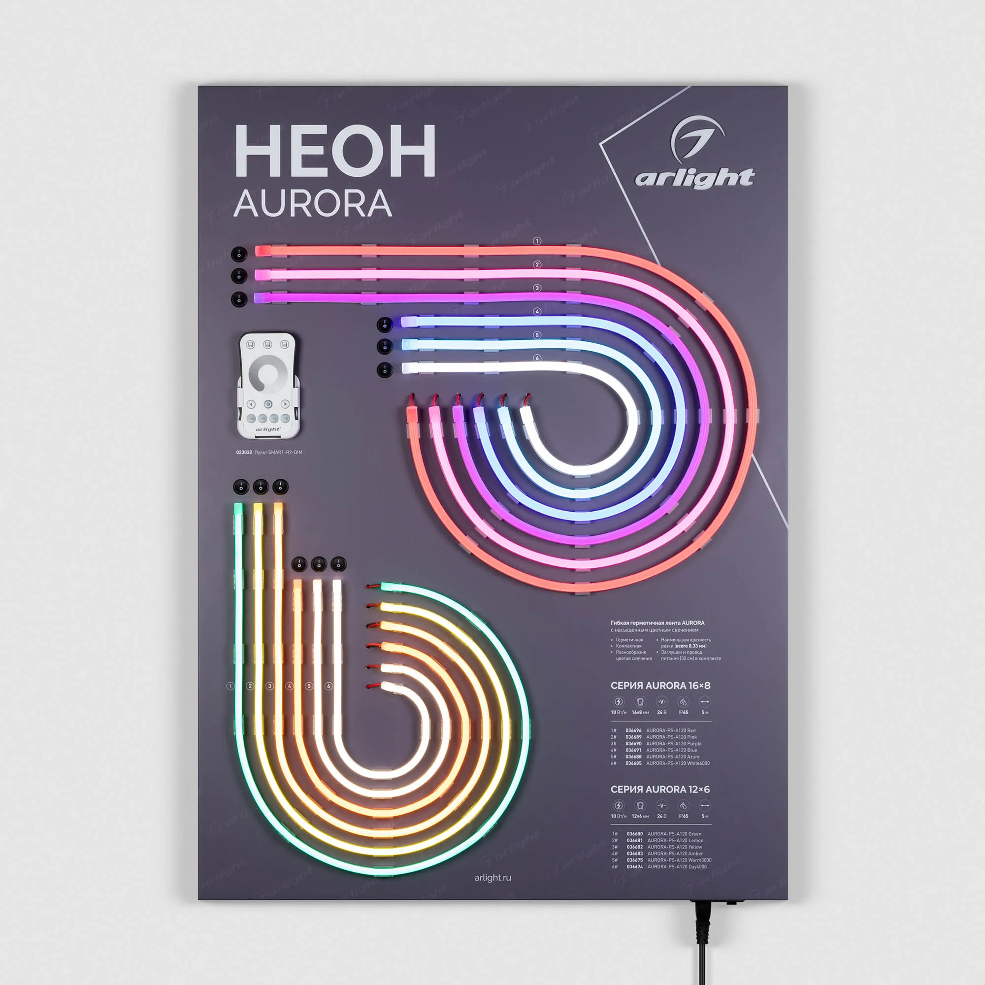 Наши специалисты знают все о продукции Arlight и с радостью помогут Вам выбрать комплектующие к товару "Стенд Гибкий Неон AURORA-830x600mm (230V) (Arlight, -)", или другие товары из раздела "Светодиодный декор".