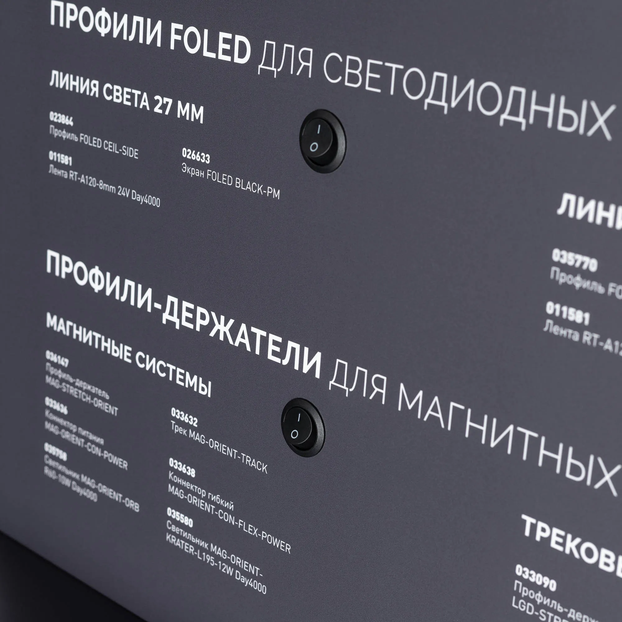 На стенде представлен ассортимент профилей Arlight для натяжных потолков: