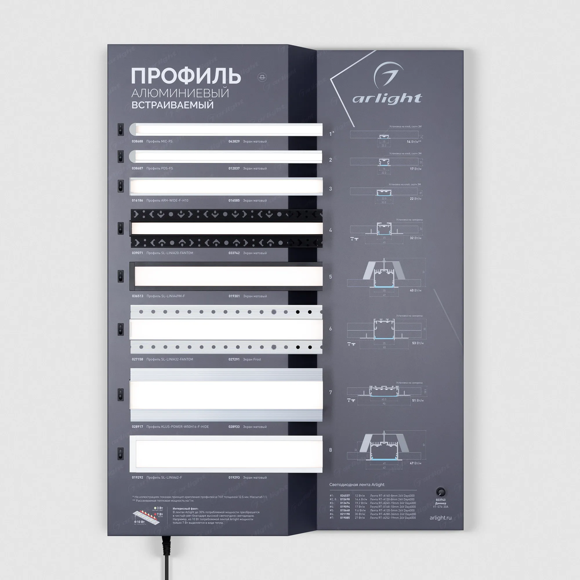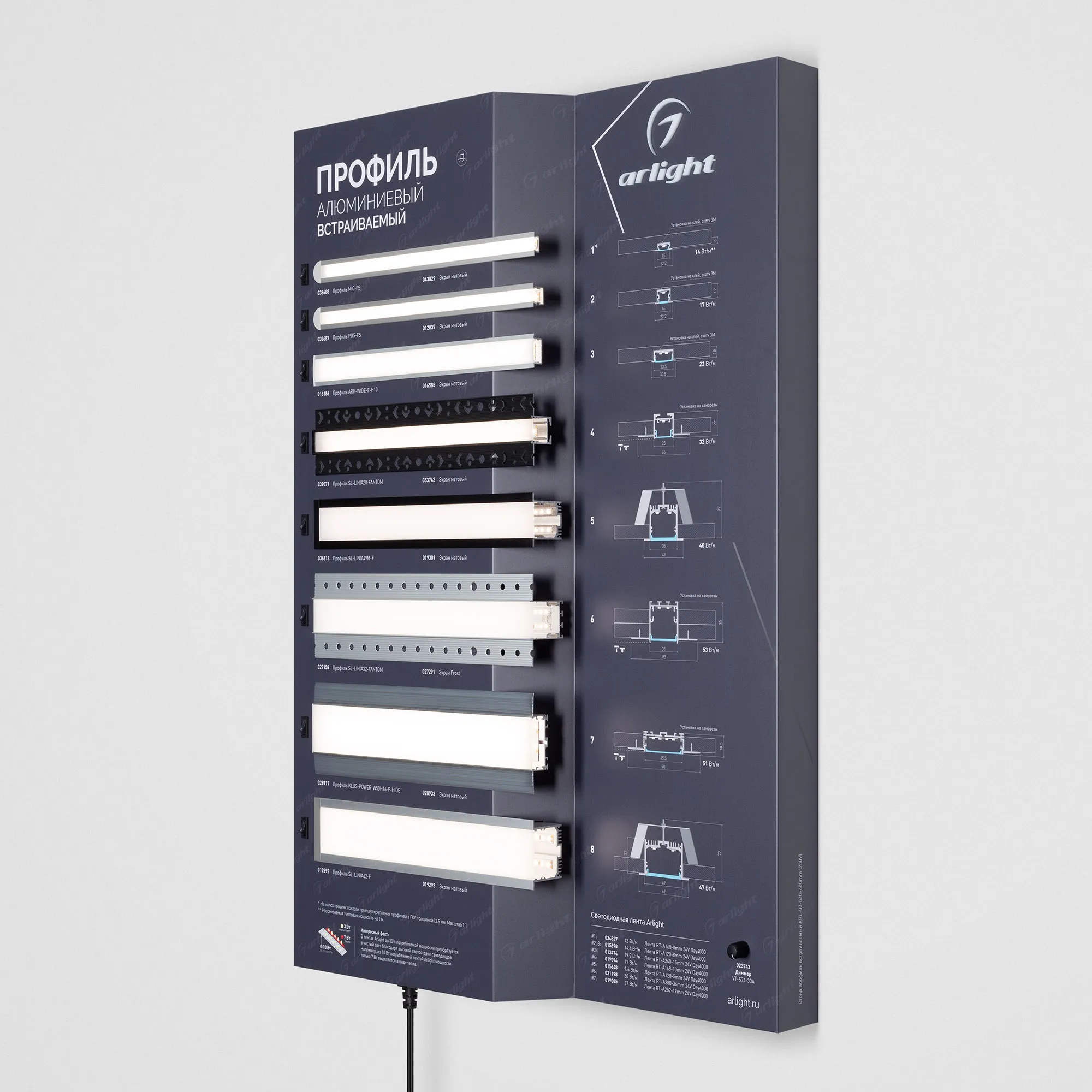 Наши специалисты знают все о продукции Arlight и с радостью помогут Вам выбрать комплектующие к товару "Стенд Профиль встраиваемый ARL-03-830x600mm (230V) (Arlight, -)", или другие товары из раздела "Алюминиевые профили SL".