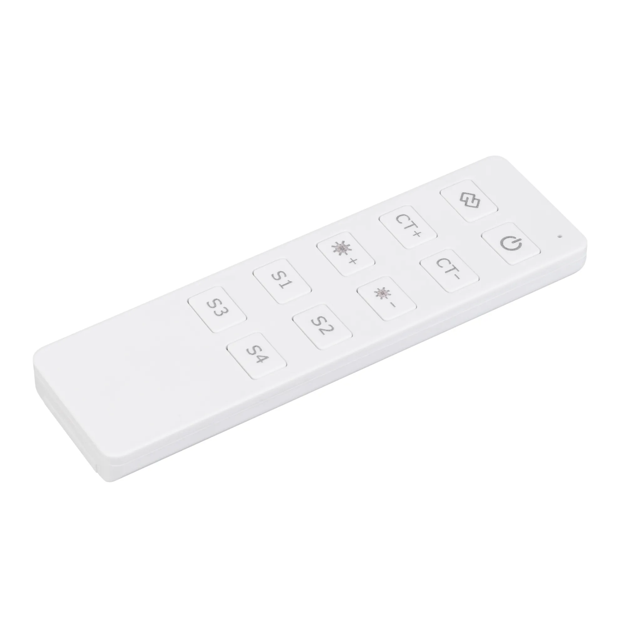 Кнопочный радиопульт ZigBee белого цвета для управления одноцветными (DIM) и мультибелыми (MIX) источниками света. 1 зона управления, 4 сцены, управление яркостью и цветовой температурой с помощью кнопок. Питание 3VDC (CR2032). Габариты 135x40x11 мм. Изготовлен из пластика. Управляет устройствами ZigBee (поставляются отдельно).