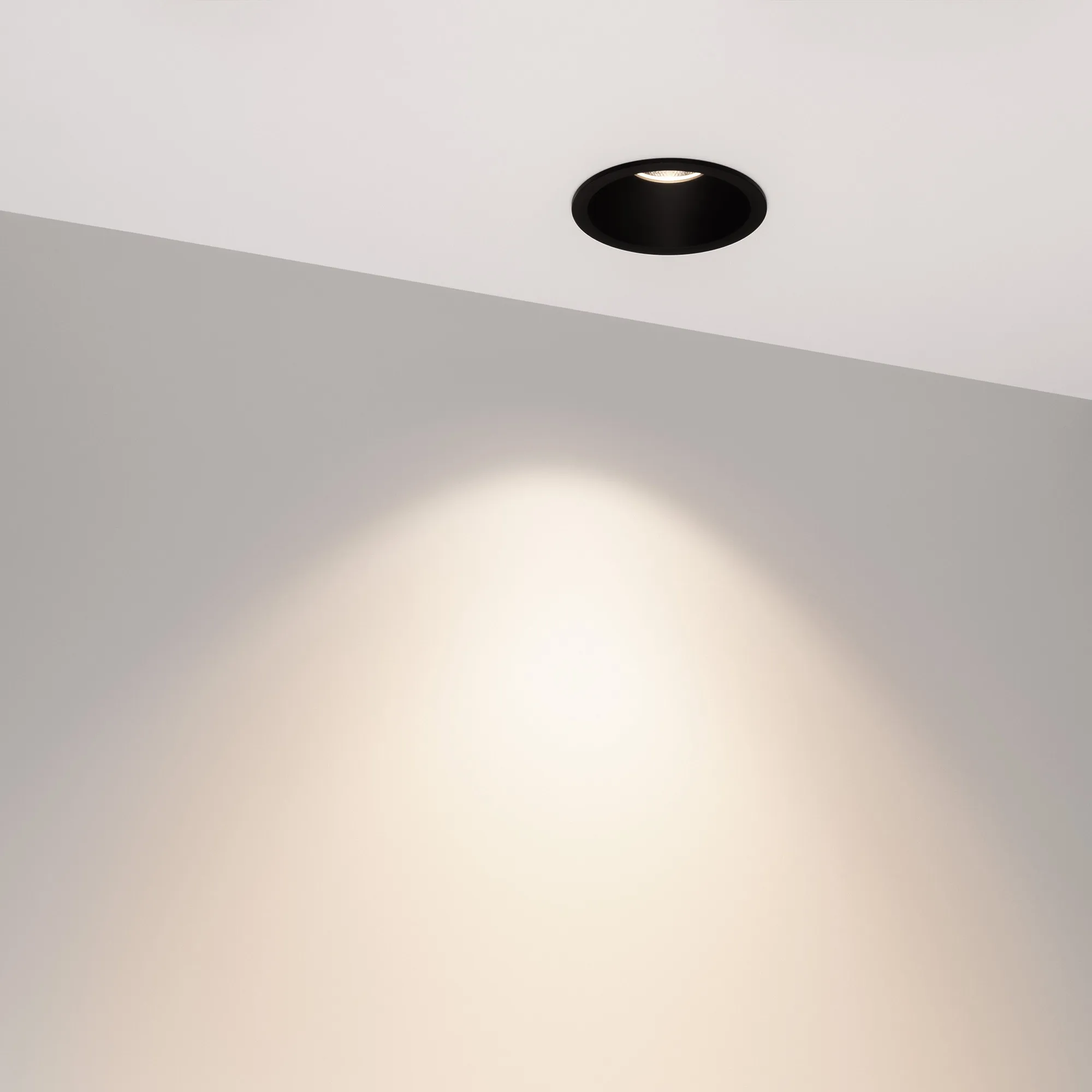 Встраиваемый светильник даунлайт. Мощность 10 Вт, св. поток 980 лм, 98 лм/Вт, дневной 4000 K, CRI>90, угол 50°, напряжение питания 230 В. Чёрный круглый корпус из алюминия, степень защиты IP20. Размер: диаметр 82 мм, высота 53 мм. Монтаж встраиваемый, установочное отверстие: диаметр 75 мм. UGR<14. Драйвер 30-42 В, 250 мА, пульсация <2%.