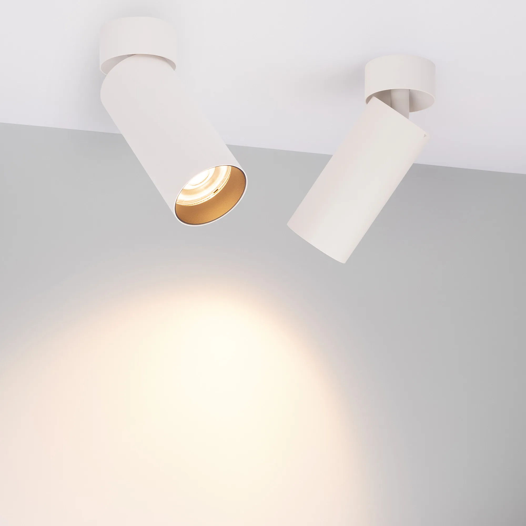 Накладной откидной светильник. Мощность 12 Вт, св. поток 1013 лм, 82 лм/Вт, теплый 3000 K, CRI>92, угол 60°, напряжение питания 230 В. Белый круглый корпус из алюминия, экран PMMA, степень защиты IP40. Размер: диаметр 60 мм, высота светового модуля 130 мм, высота основания 30 мм. Угол поворота 350°, угол наклона 90°. Монтаж накладной. Встроенный драйвер 27-42 В, 300 мA, пульсация <1%.