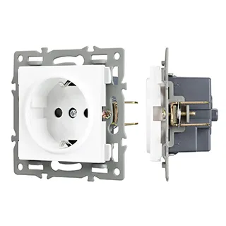Механизм розетки с заземлением на 1 пост, с суппортом из алюминия. Цвет - белый. Степень пылевлагозащиты - IP20.