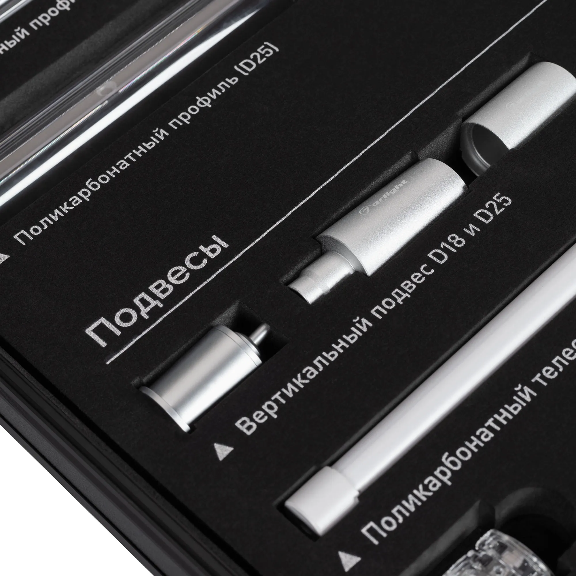 Демо-кейс для демонстрации различных вариаций круглого неона MOONLIGHT c возможностью подключения герметичных лент к сети. В комплекте демо-кейс, пять образцов неона (D13, D13 с тросом, D18, D25 и D25 с фиксацией позиции), блок питания на 230В, аксессуары для круглого неона. Материал: Металл, пластик, вспененный полиуретан. Размеры: 691×378×125 мм.