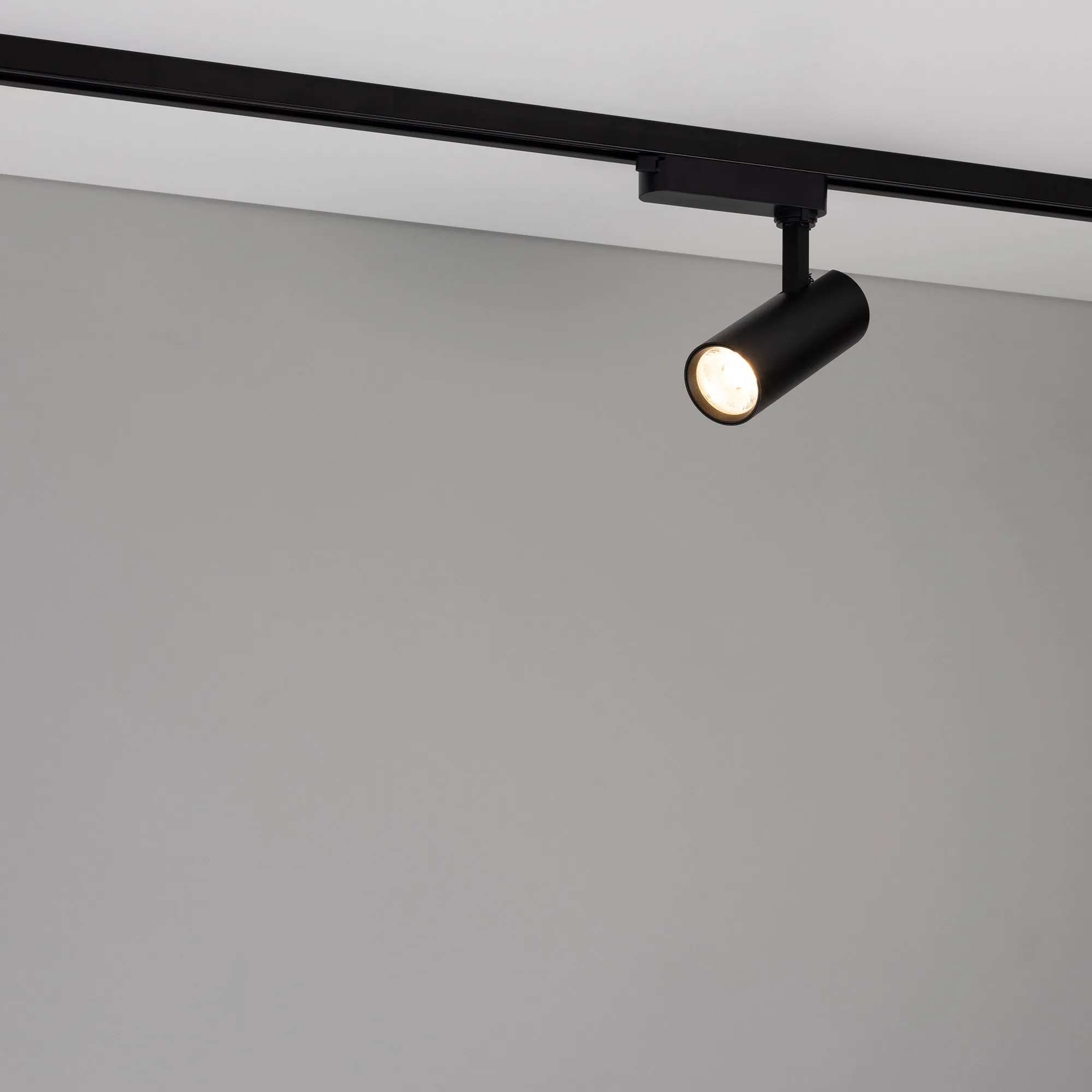 Светильник для треков/шин 2 провода. Мощность 15 Вт, св. поток без решетки honeycomb 1500 лм, 100 лм/Вт, с решеткой honeycomb 990 лм, 66 лм/Вт, дневной 4000 K, CRI>90, угол 15°, напряжение питания 230 В. Черный круглый корпус из алюминия, материал линзы PMMA, степень защиты IP20. Размер: диаметр 60 мм, длина световой части 141 мм. Монтаж на трек 1-фазный. Драйвер встроенный 350 мА 25-40 В, пульсация <5%.