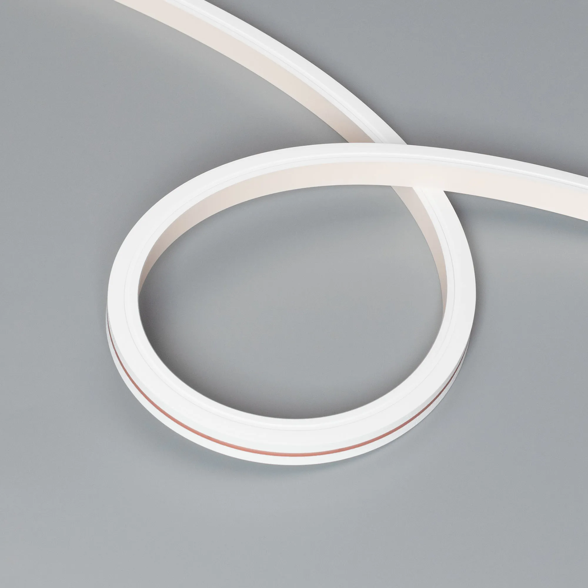 Гибкая герметичная лента (неон серии MOONLIGHT), сечение 12×13 мм. Светодиоды CSP 320 шт/м. Цвет свечения ТЕПЛЫЙ БЕЛЫЙ (3000 К), индекс цветопередачи CRI>90, световой поток 250 лм/м, угол излучения 114°. Мощность 5 Вт/м, питание 24 В. Класс пылевлагозащиты IP67. Размеры 5000×12×13 мм. Мин. отрезок 50 мм. Вертикальный изгиб TOP, минимальный радиус изгиба 60 мм. Катушка 5 м. Цена за 1 м. Диапазон рабочих температур окружающей среды при продолжительной эксплуатации -25...+80°С , при кратковременной -25...+110°С. Гарантия 3 года.