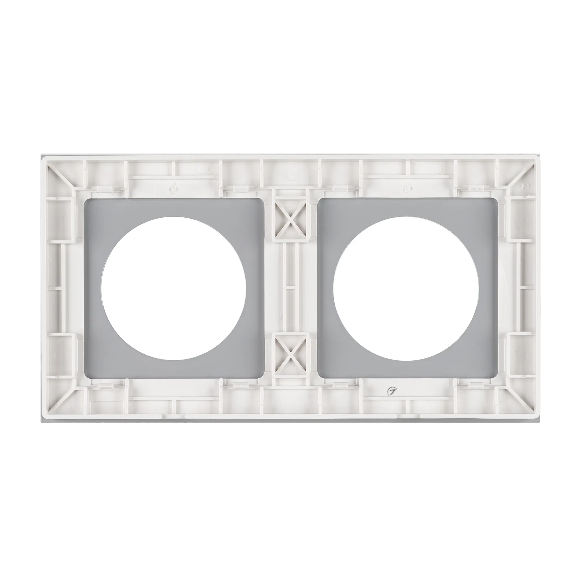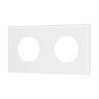 Рамка стеклянная на 2 поста, под встраиваемый механизм. Вырез под функциональную часть круг. Цвет - белый. Ориентации монтажа - горизонтальная.