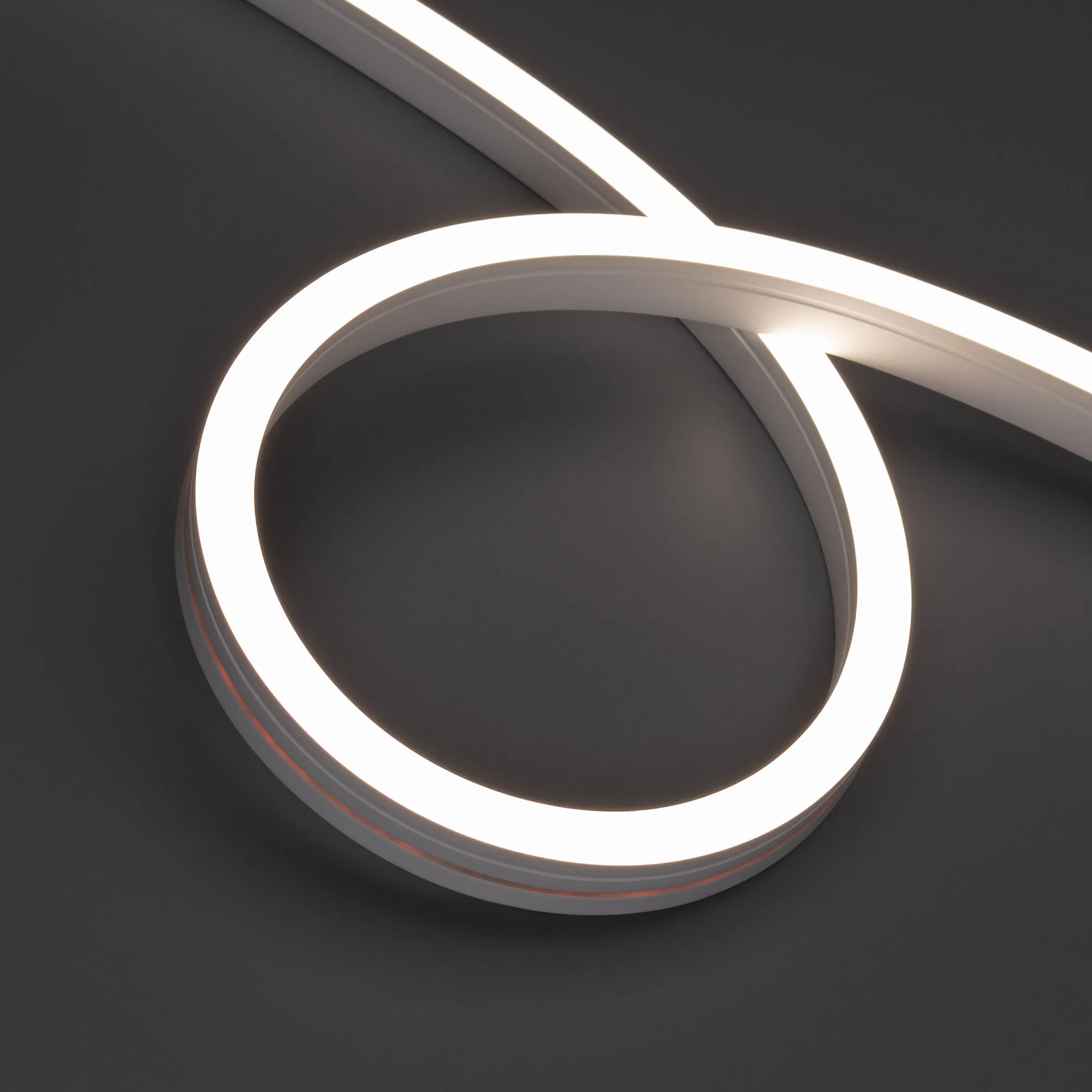 Гибкая герметичная лента (неон серии WAVE), сечение 12×25 мм. Светодиоды SMD 2835 120 шт/м. Цвет свечения БЕЛЫЙ (6000 К), индекс цветопередачи CRI>90, световой поток 511 лм/м, угол излучения 230°. Мощность 12 Вт/м, питание 230 В. Класс пылевлагозащиты IP67. Размеры 50000×12×25 мм. Мин. отрезок 100 мм. Горизонтальный изгиб SIDE, минимальный радиус изгиба 75 мм. Вывод кабеля с двух сторон перпендикулярно линии сечения неона. Катушка 50 м. Цена за 1 м. Гарантия 5 лет.