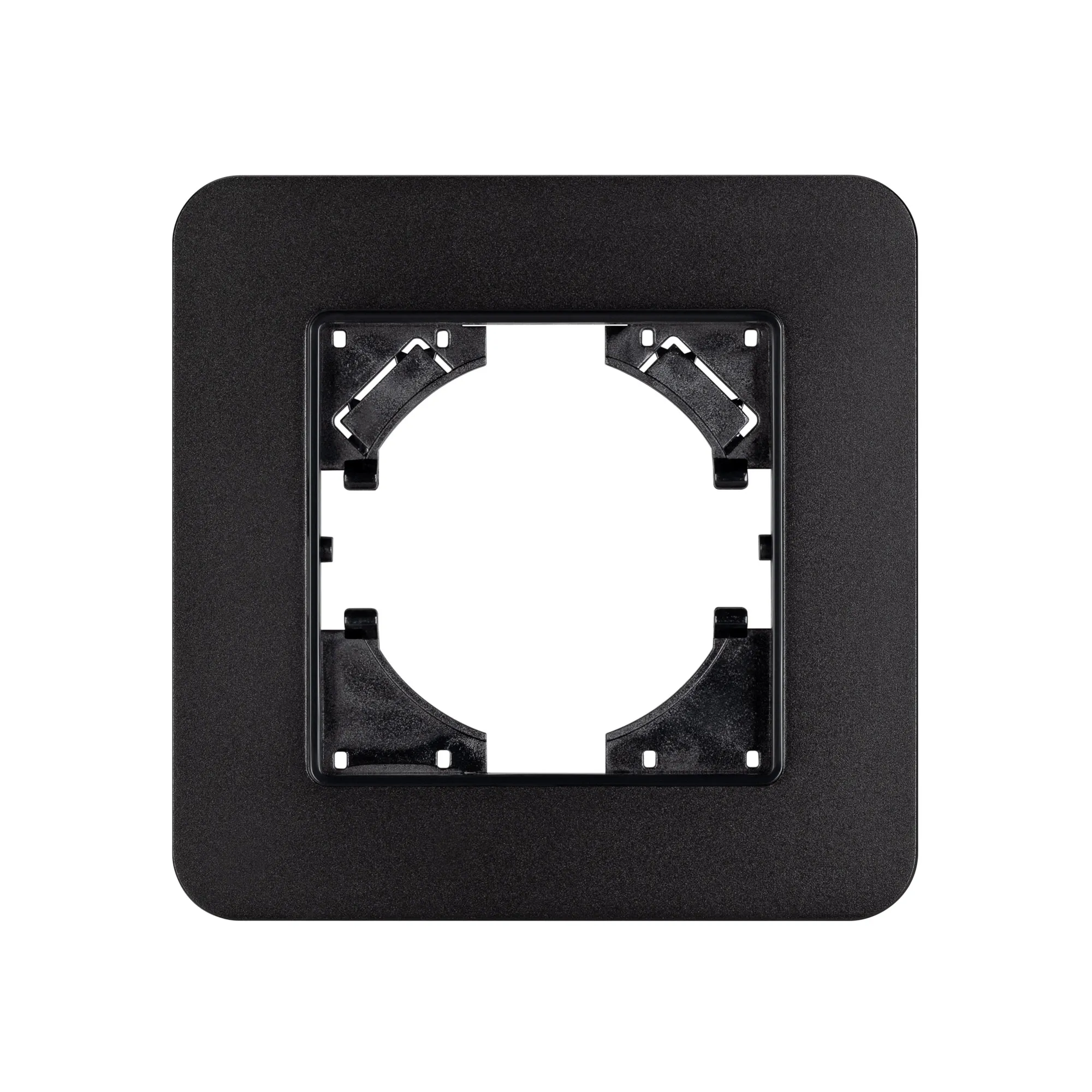 Рамка алюминиевая на 1 пост, под встраиваемый механизм. Цвет - черный с Soft-Touch покрытием. Среднего уровня герметичности IP20. Ориентация монтажа - горизонтальная (основным ориентиром служат посадочные выступы для накладки механизма).