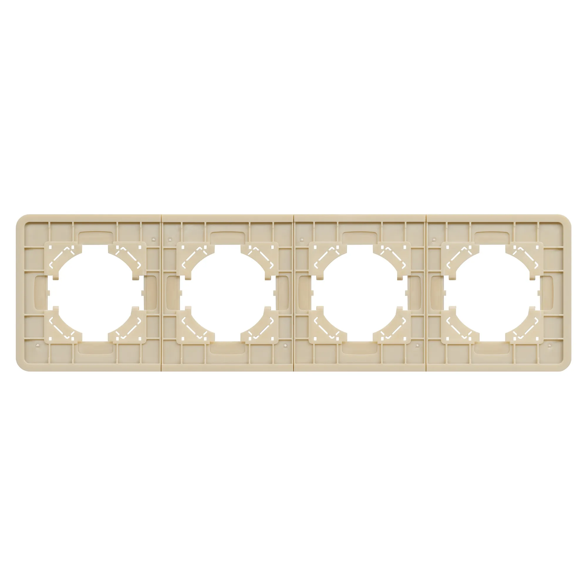 Рамка алюминиевая на 4 поста, под встраиваемый механизм. Цвет - золотой с Soft-Touch покрытием. Среднего уровня герметичности IP20. Ориентация монтажа - горизонтальная (основным ориентиром служат посадочные выступы для накладки механизма).