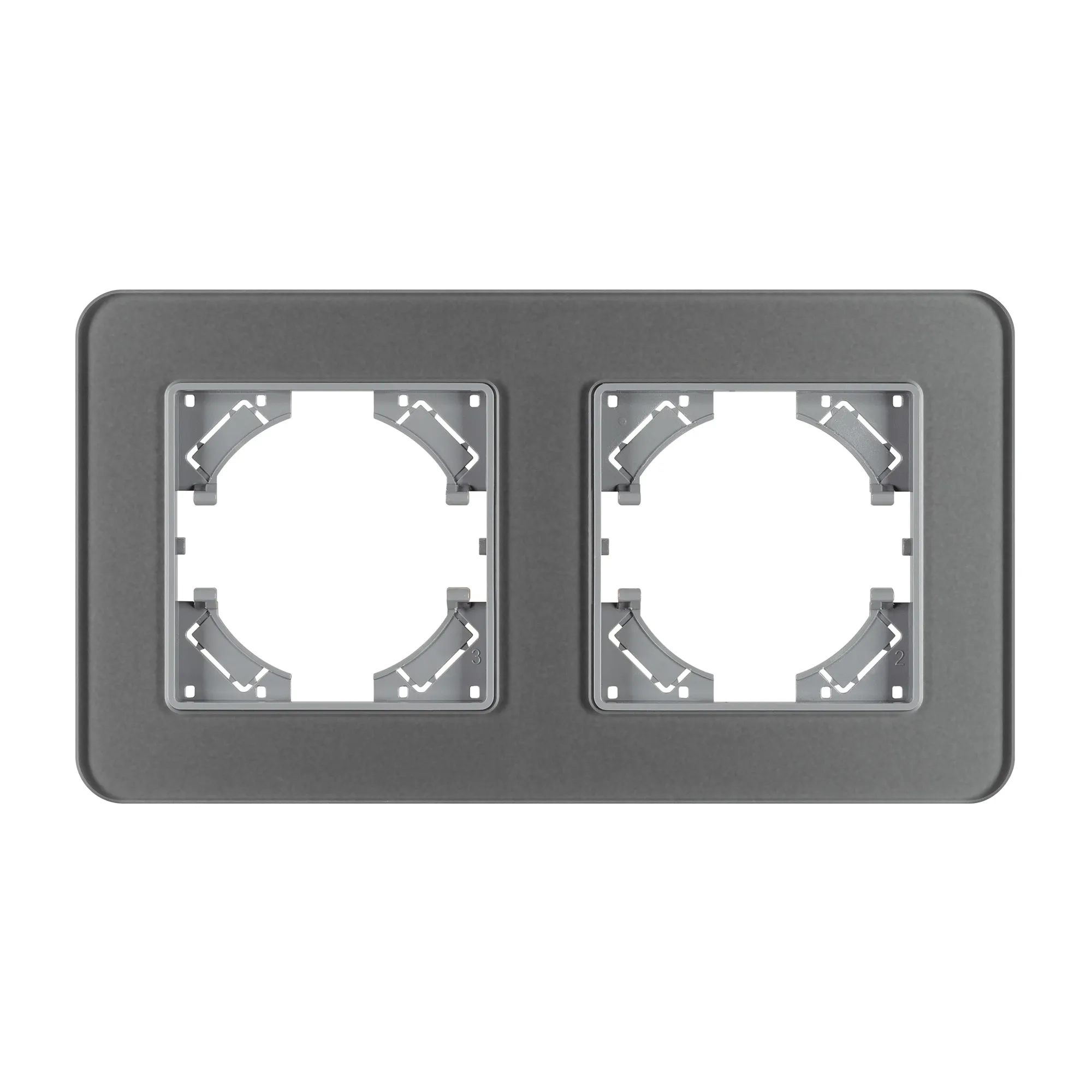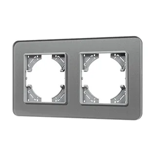 Рамка стеклянная на 2 поста, под встраиваемый механизм. Цвет - серый с Soft-Touch покрытием. Среднего уровня герметичности IP20. Ориентация монтажа - горизонтальная (основным ориентиром служат посадочные выступы для накладки механизма).