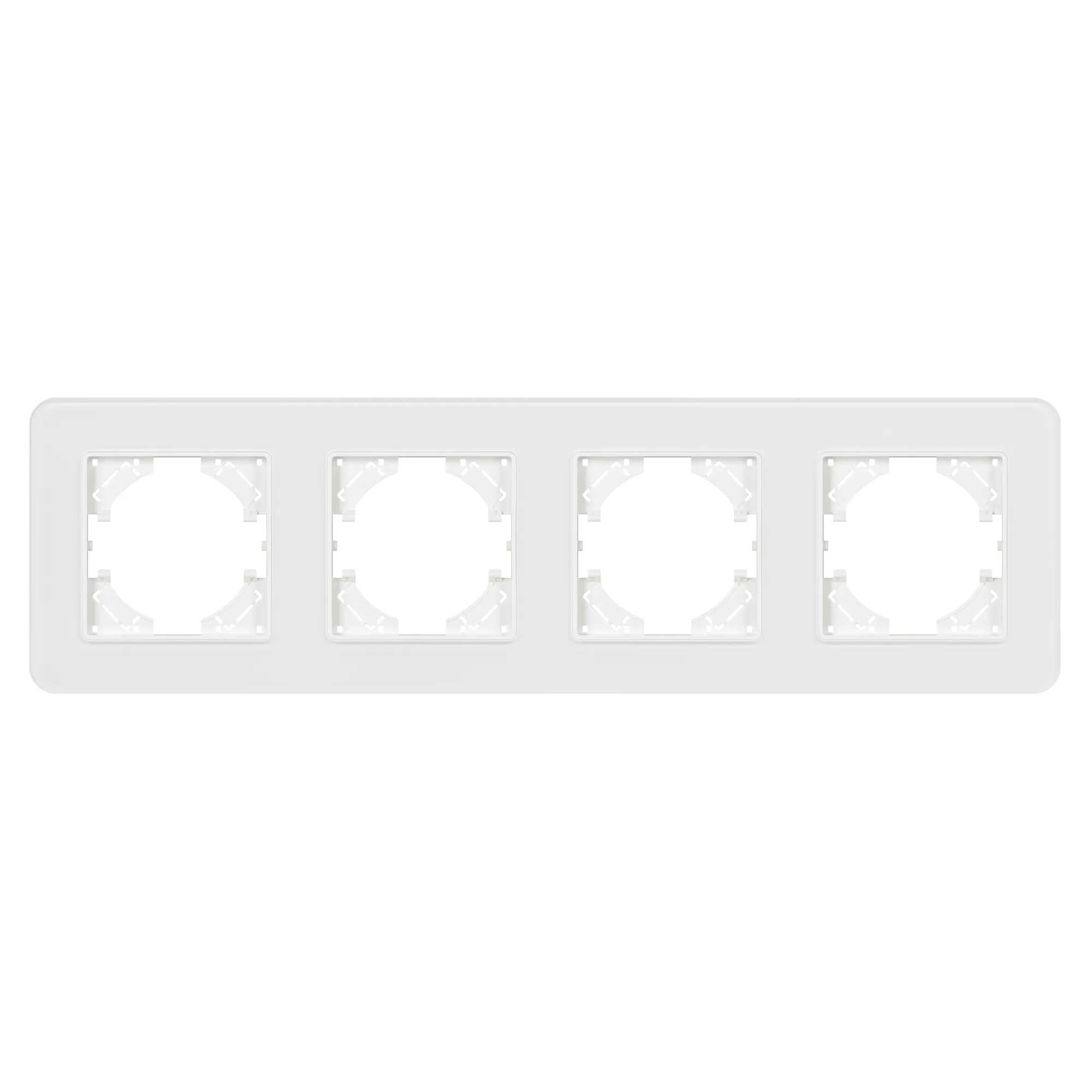 Рамка стеклянная на 4 поста, под встраиваемый механизм. Цвет - белый с Soft-Touch покрытием. Среднего уровня герметичности IP20. Ориентация монтажа - горизонтальная (основным ориентиром служат посадочные выступы для накладки механизма).